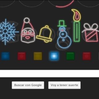 Se trata de un 'doodle' con fondo negro y coloridas figuras de la temporada que simulan ser luces como las que tradicionalmente adornan hogares y comercios.
