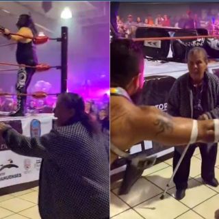 En las imágenes compartidas por la usuaria Brenda Betancourt en TikTok y que rápidamente se hicieron virales, se puede ver a una abuelita salir en defensa de un luchador profesional, segundos después encara al gladiador rudo y lanzarle unos bastonazos.