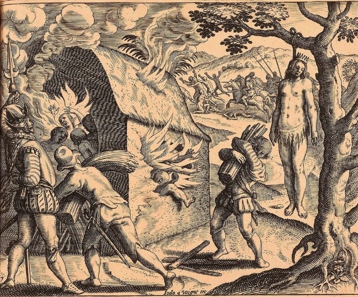 Haciéndole honor a su nombre, que significa "flor de oro", Anacaona fue una princesa taína bella y poderosa.Pero, también, fue una mujer culta y talentosa que creyó en la paz y la convivencia, y pagó por ello con su vida.Quizás por eso es una de las pocas indígenas mencionadas por su nombre en los escritos de los primeros años de la conquista de América (siglo XV).En su "Historia de Indias" (1527-1547), fray Bartolomé de las Casas la describió como "una muy notable mujer, muy prudente, muy graciosa y palaciana en sus hablas y artes y meneos y amicísima de los cristianos".Y, según el jesuita francés Pierre François Xavier de Charlevoix, era una mujer "con mucho genio superior a su sexo y a su nación", como escribió en Histoire de l'Isle espagnole ou de S. Domingue, de 1730.El 5 diciembre de 1492, cuando Cristóbal Colón y su tripulación arribaron a la isla que los nativos llamaban Quisqueya ("madre de todas las tierras"), Bohio ("casa para los taínos"), Babeque ("tierras con oro") y Ayti, y que los españoles bautizaron La Española, se piensa que Anacaona tenía 18 años.En ese momento, la isla era dominio mayoritario de los taínos, y, según De las Casas, había cinco cacicazgos.El más extenso y populoso, Jaragua, estaba bajo el mando del hermano de Anacaona, Bohechío.Ella vivía en Maguana pues se había casado con su cacique, Caonabo.Era respetada y querida no sólo por su estatus, sino también por componer poesías y canciones, con las que se destacaba en los areítos, una manifestación cultural y religiosa de los taínos que celebraba con canto, recitación de mitos y baile, eventos importantes como la visita de un cacique o el éxito de la cosecha.Aunque la historia de Anacaona está imbuida de leyenda, se dice que su actitud ante la llegada de los españoles fue inicialmente positiva e incluso tras repetidas amarguras, consciente de la fortaleza de los conquistadores, nunca dejó de abogar por la paz y la convivencia.En diciembre de 1492, Cristóbal Colón ordenó la construcción del Fuerte Navidad con los restos de la embarcación Santa María, en la costa norte de La Española.Dejó a 39 hombres al cuidado de esa primera construcción española en la isla.Antes de partir, les advirtió que no abusaran de las aborígenes, pero no le obedecieron.A su regreso, en 1493, encontró el fuerte destruido.A todos los hombres que había dejado, según el primer cronista oficial de las Indias Gonzalo Fernández de Oviedo, los habían matado "los indios, no pudiendo sufrir sus excesos porque les tomaban las mujeres e usaban de ellas a su voluntad, e les hacían otras fuerzas y enojos, como gentes sin caudillo e desordenada".Caonabo fue culpado y algunos informes dicen que fue Anacaona quien, al enterarse de los maltratos de los españoles a las indígenas, lo convenció de atacarlos.No obstante, hay quienes cuestionan esa versión de los hechos, entre ellos Luisa Navarro, exdirectora de la escuela de Historia y Antropología de la Universidad Autónoma de Santo Domingo.Conversando con BBC Mundo, la historiadora resaltó que, sin medios de transporte adecuados, le era casi imposible ir a Fuerte Navidad."Para llegar desde donde estaba hasta el fuerte había que subir por la cordillera Septentrional y bajar del otro lado para llegar a la zona costera del valle del Atlántico"... algo que le habría tomado al menos 63 horas a pie."¿Cómo hizo Anacaona ese viaje para saber qué estaba pasando y volver a decírselo a Caonabo?", se preguntó Navarro.Otros historiadores han sospechado que Caonabo fue inculpado por razones políticas y que los cargos por los que el navegante español Alonso de Ojedase lo detuvo dos años después eran falsos.Hasta la forma de apresarlo fue engañosa.Navarro contó que, antes de la detención, Ojeda le propuso un pacto al cacique: le ofreció un regalo y cuando él estiró las manos para aceptarlo le pusieron las esposas."Caonabo murió cargado de cadenas y grillos (grilletes)", según De las Casas, cuando una tormenta hundió la embarcación que lo llevaba a España, en 1496.La reina viuda de Maguana se fue a vivir con su hermano Bohechío en la vecina Jaragua, donde era "acatada y temida" como el cacique, según Gonzalo Fernández de Oviedo.Y cuando, poco después, el hermano menor de Cristóbal Colón, Bartolomé, llegó al cacicazgo, a pesar del deterioro de la relación con los conquistadores, Anacaona persuadió a Bochechío a reconocer la soberanía de los Reyes Católicos y comprometerse a pagar un tributo que el adelantado había impuesto ya en otras regiones de la isla.La visita de Bartolomé Colón, según los cronistas, fue un evento alegre, en el que fue agasajado con fiestas y tantos regalos que tuvo que fletar una carabela para poder transportarlos.Él, a su vez, invitó a Anacaona y Bohechío a su barco y, cuando descargaron la artillería en su honor, el ruido los turbó tanto "que de espanto casi se echaron al agua; pero viendo a don Bartolomé reirse, se sosegaron", cuenta el cronista Antonio de Herrera y Tordesillas.Añade que, después del incidente, "miraban la popa, y proa alrededor: entraron en la carabela, bajaron abajo, estaban atónitos", y según De las Casas, el recorrido por la carabela "dejó alegres al rey e a la reina y a todos los señores y gentes suyas muy contentos".Es uno de los pocos hechos que se conocen de la vida de Anacaona, y de los más felices, que son aún más escasos.En 1502, Anacaona, cacica de Maguana, perdió a su hermano. En reconocimiento a su valor e ingenio fue nombrada cacica de la "médula" de toda la isla: Jaragua.Para entonces, La Española estaba desbarajustada. Había habido una rebelión de españoles frustrados y un levantamiento de varios caciques indígenas que luchaban contra los invasores.El nuevo gobernador de las Indias, el comendador de Lares frey Nicolás de Ovando, se propuso pacificar la isla, y el lejano cacicazgo de Jaragua estaba en su mira, no sólo porque era dond