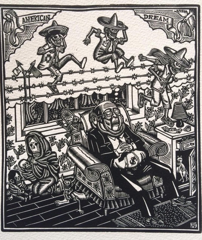 El grabador michoacano, Artemio Rodríguez llega a Guadalajara para dejar su huella en los pasillos de la Feria Internacional del Libro y la librería Carlos Fuentes, espacios en los que este artista de la gubia compartirá más de 25 años de trabajo en tinta y papel.La agenda del artista luce llena. Y es que Artemio Rodríguez ofreció una charla y taller en FILustra sobre su experiencia en el grabado y técnicas de impresión con una simple cuchara, a lo que se suma que previamente, el 1 de diciembre presentó una exposición compuesta por más de 100 obras. Para aquellos que deseen disfrutarla, se encuentra montada en la librería Carlos Fuentes (Periférico Norte Manuel Gómez Morin #1695).Rodríguez señala que actualmente México experimenta nuevas olas creativas, creciendo alrededor de técnicas como el grabado y la gráfica más artesanal. En su caso, él ha usado ambas técnicas para desarrollar una carrera internacional que lo ha llevado lejos de su natal Tacámbaro (Michoacán), hasta rincones a residencias artistas en Hawái y consolidar su carrera en ciudades como Los Ángeles.El artista recuerda que su sueño por ser escritor fue clave para acercarlo al grabado, las tintas y las gubias, y aunque considera que su talento no se vio reflejado en las letras, su discurso migró por completo a las placas como el linóleo para abordar temáticas de todo tipo que reflejan la identidad mexicana.“Me atrapó ese diálogo, la relación tan estrecha que el grabado tiene con el libro. Yo al inicio quería ser escritor y no se me dio muy bien, pero me di cuenta que podía escribir a través de las imágenes y los grabados”.A través de la exposición, el espectador podrá conocer algunos de los trabajos emblemáticos y de gran impacto de Artemio Rodríguez, como la versión que hizo de 2.44 por 3.66 metros de “El triunfo de la muerte” de Pieter Brueghel, pieza con la que el artista michoacano recuerda cómo es que anteriormente se podían dar a conocer y llevar obras de arte a otros espacios físicos mediante la reproducción artesanal en otro medio, previo a la invención de la fotografía.“Creo que es importante en estos días seguir asumiendo y usando estos métodos tradicionales de producción para hacer reflexiones sobre el presente y el futuro. Muestro un poco de todo, desde invitaciones ilustradas y libros que he hecho con el maestro Juan Pascoe, así como obra y estampas para galerías”.
