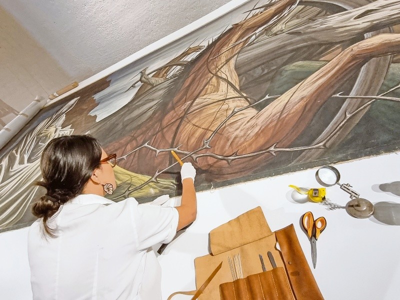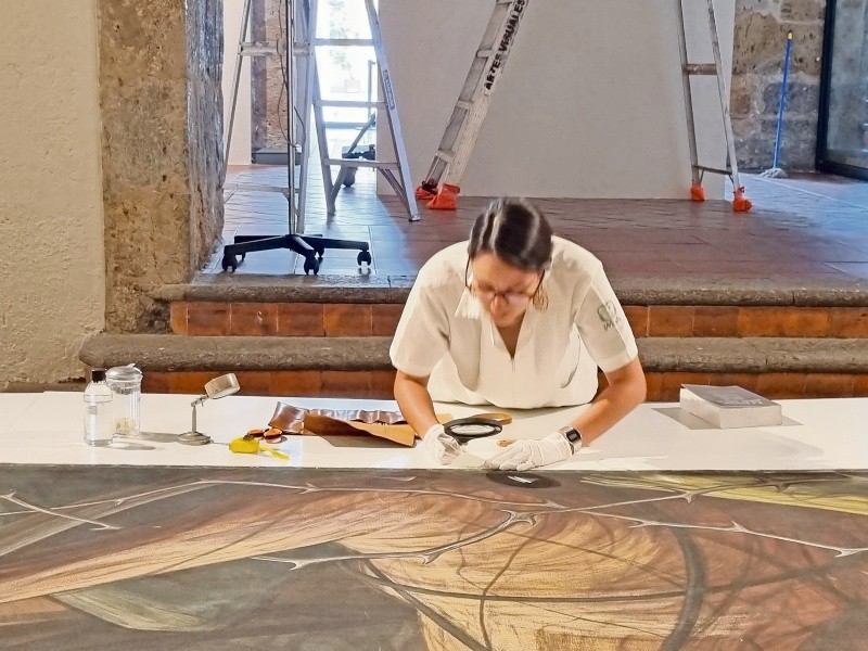 A partir del próximo martes 23 de agosto, el Ex Convento del Carmen —en lo que significa una nueva edición de MEGLab— será la sede para llevar a cabo una restauración abierta al público del mural “La Guerra y la Paz” del artista jalisciense Gabriel Flores, a cargo de un equipo de trabajo integrado por Carolina Méndez, Tania Martínez y Joselyn Alvarado, todas encabezadas por María Larios; esta actividad forma parte de las que se llevarán a cabo para la celebración del Centenario del Muralismo Mexicano que organizan la Secretaría de Cultura de Jalisco en colaboración con el Museo Cabañas y el OPD encargado de Museos, Exposiciones y Galerías (MEG).Este proyecto se gestó gracias a la colaboración interinstitucional, cuenta Larios en entrevista con EL INFORMADOR, “el mural se hallaba en resguardo en el Museo Cabañas, y la propuesta de intervención provino del restaurador del museo, y Enrique Nuño —quien es encargado de los trabajos de museografía— es quien hará los bastidores para montar el mural”. Esta “intervención” al mural de Flores es previa a lo que será la exposición sobre su legado, en el marco del Centenario del Muralismo y estará abierta al público de martes a viernes, de 11:00 a 17:00 horas; así, el mural será “pieza protagónica, y había que restaurarlo para exhibirlo (en bastidores) de forma íntegra, no olvidemos que mide 15 x 2.8 m. Ahora, las estructuras del bastidor lo fijarán (sin daño) al muro”.Ahora, para quien recuerde, el mural “La Guerra y la Paz” estuvo en exhibición en el edificio donde antes estuvo la SC, en la esquina de Av. 16 de Septiembre y Av. La Paz, en la zona Centro; cuando se acusaron defectos estructurales en la edificación y el riesgo de colapso, en 2015, se desmontó el mural y fue resguardado en el Museo Cabañas, lo que significa que no es visto desde entonces pero, como comenta la restauradora, “está en un muy buen estado de conservación, sólo tiene pequeños detalles, pero la intervención se basa en construirle su bastidor nuevo, lo que haremos nosotros es preparar el lienzo”.La idea del taller abierto fue de la propia directora del MEG, Miriam Villaseñor, de ahí que se inscribe como parte de MEGLab, que integra proyectos de conservación y restauración en los museos del OPD; de esta forma, refiere Larios, “comenzaremos el martes, no sólo para que la gente vea los procesos de restauración, también se proyectará un documental sobre Gabriel Flores, para complementar la información sobre el artista; además, en la sala contigua se estará construyendo el bastidor”.Para la restauradora, “la idea es que esto representa una parte didáctica, porque se trata de que el público no vea solamente la exposición ya montada, que aprecie lo que sucede detrás, lo que implica (en términos técnicos) preparar una pieza para ser exhibida; una labor que puede tomar mucho tiempo y ser llevada a cabo por numerosas personas, y ayudará a comprender cómo es necesario un restaurador en un museo (porque es fundamental su trabajo)”. Aunque entusiasta ante la tarea que coordina, María Larios no deja de reconocer “los nervios que da esta responsabilidad, el poder transmitir al público por qué es importante este trabajo, tanto para la obra como para el espectador, y es que además está el objetivo de que la obra se conserve en las mejores condiciones posibles”.A lo anterior, comenta la especialista, hay que agregar “las dimensiones de la pieza; estamos acostumbrados a trabajar con piezas mucho más pequeñas y la dificultad técnica que implica hacer trabajos sobre una obra de estas características da un poco de nervios”; además, la disciplina de la restauración no suele realizarse a la vista de las personas, “y es sumamente específica, utiliza materiales particulares, por eso también esto representa una oportunidad de mostrar este oficio especializado”.Lo que se planea es “una serie de procesos que comienzan con la limpieza superficial (anverso y reverso), porque estuvo en exhibición y no ha recibido mantenimiento en años; después de eso, se colocan bandas de lino para afirmar el perímetro de la obra, para que su manipulación sea más segura y que permiten proteger el original. Luego se harán resanes y reposición cromática, algo mínimo pero debe hacerse para restituir las capas pictóricas”.Asimismo, un detalle a notar es que el mural se realizó, indica la restauradora, “en una sola pieza de tela, lo que da cuenta del interés del artista, desde la concepción de la obra, para dar unidad a la pintura y que se conserve mejor. Si hay junturas, las costuras pueden aflojarse y abrirse, generar desprendimientos u otros problemas. Gabriel Flores eligió esto para que semejara también una pintura en muro”.Finalmente, la cuestión es “poner de relieve los procesos que realizan los restauradores, y promover esta disciplina”, dice Larios, “es también una excelente oportunidad para atender al público, y encarar al reto que significan las dimensiones de la obra. Y todo se hará de la mejor manera”. Pintor, dibujante y muralista, nacido en Arenal, Jalisco, en 1930. A los 17 años ingresa al taller del maestro José Vizcarra y posteriormente estudia con los pintores Rubén Mora Gálvez, Mario Alfonso Medina y Jorge Martínez.De 1948 a 1950 se inscribe en la Escuela de Bellas Artes de Jalisco que se ubica en el Museo del Estado, allí junto con Guillermo Chávez Vega e Ignacio Martínez forma el Frente Neo-Realista de Jalisco, en contra del abstraccionismo. Radica después en la ciudad de México (1952-56), donde conoció y colaboró con Siqueiros y con el maestro O’Gorman, realizando murales.A los 25 años de edad se inició en Guadalajara como muralista. En 1958 Agustín Yáñez lo selecciona para realizar murales en la Biblioteca del Estado y en la gran cúpula de la Casa de la Cultura de Guadalajara. Más tarde, en 1960, pinta otro en el Teatro Experi
