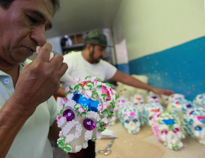 Desde hace cuatro generaciones, artesanos mantienen su tradición en la elaboración de calaveritas dulces, elementos indispensables en las festividades alrededor del Día de Muertos, que resisten como símbolo de los valores mexicanos frente a la influencia de Halloween. Juan Jiménez, de la empresa familiar Dulcería Jiménez Hermanos, dice que el negocio comenzó con sus bisabuelos y se mantiene hasta hoy, cuando ya se está formando a una nueva generación de artesanos para elaborar estos típicos productos, hechos de azúcar o de chocolate. La celebración del Día de Muertos, cuando las calaveritas se disponen en los altares que se preparan en honor a los seres queridos, es el periodo de más bullicio para la fábrica, ubicada en la Ciudad de México y que el resto del año elabora productos tradicionales como camotes o dulce de leche. "Para nosotros son las benditas calaveras", refiere Jiménez sobre el producto estrella, que generalmente comienzan a elaborar a mediados de septiembre, aunque también reciben pedidos desde semanas antes para atender a clientes que viven en el extranjero. El proceso para elaborar una calaverita de azúcar abarca tres días. En un recipiente de cobre, se meten alrededor de 25 kilos de azúcar y cinco de agua, que se ponen a hervir. Después de agregar una decena de cucharadas de limón, se espera a que la mezcla esté "a punto de caramelo", momento en el que se enfría y pasa de un color cristalino a blanco. Es entonces cuando se rellenan los moldes de barro, se deja enfriar unos minutos y ya se saca la mezcla con la forma característica de la calavera, y que hay que dejar reposar un día antes de empezar con la decoración, tras lo cual hay que dejar pasar otras 24 horas. Para la decoración primero se ponen papeles de colores en la frente y en los ojos, y a continuación, con la pasta de colores, se hacen los dibujos con una técnica "única", señala Jiménez. Esta decoración, agrega, "es un secreto" que se ha mantenido durante mas de 30 años, y que no se enseña a ningún trabajador fuera de la familia. Actualmente, solo la conocen él y su hermano, y en un futuro, sus hijos aprenderán a realizarla. La fábrica realiza calaveras de doce tamaños diferentes. La más pequeña pesa alrededor de diez gramos, mientras que la más grande es "del tamaño de una cabeza de ser humano y pesa aproximadamente un kilo", dice el artesano. Jiménez explica que desde hace una década el negocio "ha aumentado un poco", pero que este año no ha crecido debido a los terremotos registrados en el país el 7 y 19 de septiembre, así como por la marcha general de la economía, "que desde enero se ha sentido muy, muy lenta". Frente a la cada vez más tangible influencia de Halloween en México, el artesano defiende el papel de la tradiciones alrededor del Día de Muertos, para recordar y honrar a los que seres queridos que "no están muertos, nada más se nos han adelantado un poquito, porque todos vamos para allá". La elaboración de altares y las visitas al panteón el 2 de noviembre -argumenta- se mantiene con fuerza gracias a las escuelas, que explican a los niños la relevancia de estos festejos. "Eso de Halloween la juventud lo agarra como la pachanga, hacen su fiesta, salen a bailar, a tomar, pero el homenaje a nuestros muertos es poner la ofrenda", relata convencido. En la familia, la tradición de las calaveritas va para largo. Incluso los jóvenes a los que no les gusta esta profesión como forma de vida acuden a la fábrica en sus ratos libres para ayudar. "Mi padre nos inculcó de niños este trabajo, y es una escuela que no falla", concluye el artesano.