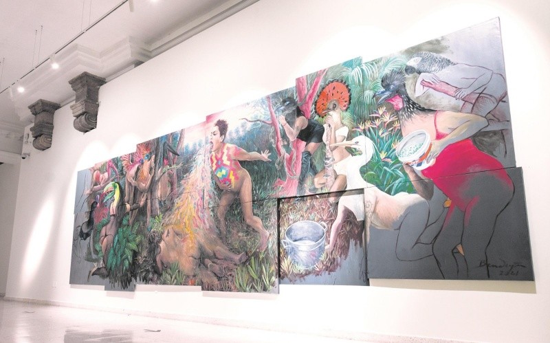 De visita por primera vez en México, el artista plástico y curador Christian Bendayán será el responsable de inaugurar una de las primeras jornadas culturales de la Feria Internacional del Libro de Guadalajara (FIL), siendo el Museo de las Artes (MUSA) el espacio que albergue a “Purga”, exposición con la que Perú, país invitado de honor a la fiesta literaria, mostrará parte de su cosmovisión desde la tradición y esencia de los pueblos originarios de la Amazonía peruana.Previo a la inauguración que “Purga” tendrá esta noche en el MUSA, Christian Bendayán, en entrevista con EL INFORMADOR, ahonda en los detalles que dan forma a esta muestra integrada por más de 20 piezas que transitan entre la pintura, el collage, el video y la cerámica, siendo este montaje el que reactiva las exposiciones internacionales del autor tras ausentarse presencialmente de las galerías, bienales y museos a raíz de la pandemia.Christian Bendayán, nacido en 1973 en Iquitos, Perú, explica que “Purga” es una palabra constante en el cotidiano de la Amazonía, al ser un proceso de limpieza que se realiza para reiniciarse, para tomar vuelo al dejar atrás todo aquello que no es de beneficio, por lo que migrar a la pintura esta experiencia que el mismo ha atestiguado fue clave para acercar al espectador a un diálogo sobre cómo también las purgas están presentes en el día a día en nuestra forma de convivir y relacionarnos con la naturaleza.“La purga es una palabra que usamos mucho en la Amazonía peruana para referirnos a un proceso de limpieza del cuerpo y del espíritu, son diferentes etapas y la purga es una de ellas; en la uno: toma un purgante natural para arrojar todo lo contaminado con lo que puede estar el cuerpo, pasamos por una dieta con alimentos vegetales, peces pequeños, plantas, en diferentes horarios del día, puede llevarte una semana o hasta meses”.Christian Bendayán resalta la importancia de realizar purgas espirituales y físicas para volver a nacer y reorganizarse en cada ámbito de la vida, haciendo énfasis también en cómo este concepto está más que nunca presente y necesario ante las diversas situaciones que enfrenta cada sociedad y el mundo en general, en donde la desvinculación con la naturaleza es evidente y la polarización entre las personas también se manifiesta cada vez con más fuerza.“Creo que la Amazonía y diversas culturas nos plantean retomar esa relación de respeto, de diálogo con otros elementos de la naturaleza. Quizá es la lectura que se le puede dar a ‘Purga’, justo hay una obra que da nombre a la exposición, tiene que ver con eso, reencontrarnos con otros seres, aprender, ver cómo se relacionan las plantas, los animales, cómo nosotros hemos ido desconectándonos de una naturaleza saludable para imponer nuestra ley, la cual no respetamos, creo que eso nos está pasando factura en este momento”.En constante transformaciónBendayán, con amplia trayectoria en exposiciones y concursos internacionales como la Bienal de Venecia, detalla que las obras que integran a “Purga” fueron elaboradas en los últimos tres años, además de sumar nuevas piezas creadas especialmente para su encuentro en Guadalajara: “Purga es una especie de revisión de mi obra pasada, los últimos momentos de una etapa que duró muchos años y que ahora comienza dar señales de cambios radicales”, comenta al referir cómo en su proceso creativo las purgas y depuraciones también son constantes para concluir una obra, pues incluso, algunas piezas llevan tras su estética final otras obras que fueron transformándose a lo que inicialmente concibió para el lienzo.“Mi obra ha sido acompañada de mi labor curatorial, que como curador he desarrollado más de 60 exposiciones entorno a diferentes etapas productivas y momentos históricos de la Amazonía y su arte. He ido buscando mis propios referentes, en algún momento fue con el arte popular urbano, callejero y me vinculé con varios artistas, estaba muy marcado por esa experiencia, luego trabajé con la parte histórica, la pintura del siglo XX, rescatar la imagen de figuras que fueron importantes, todo esto marcó gran parte de mi producción”.AgéndaloInauguración de la exposición “Purga” del artista peruano Christian Bendayán, en el MUSA, a partir de hoy a las 20:00 horas; en tanto que a las 16:30 horas se ofrecerá una charla presencial con el autor en el patio del museo. El ingreso será con previo registro en Facebook.com/museodelasartes. La exposición permanecerá abierta al público gratuitamente hasta el 27 de febrero del 2022.