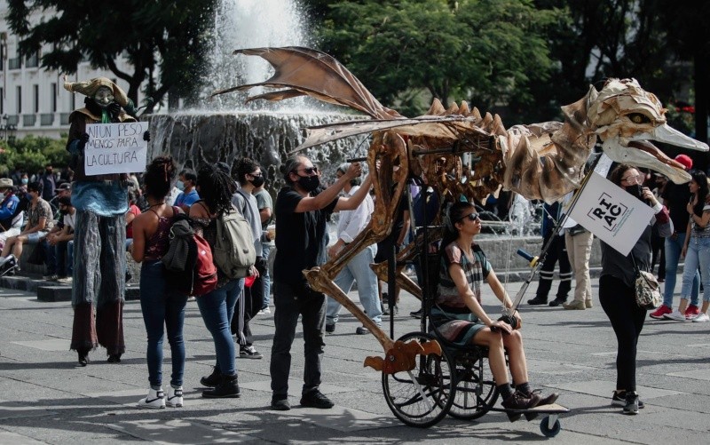 Ayer el sector cultural en Jalisco tuvo una jornada intensa; la mañana inició con una manifestación en la plaza Liberación, donde artistas convocados por la Red Independiente de Agentes Culturales de Jalisco (RIAC) se dieron cita de 10:00 a 14:00 horas con el objetivo de sensibilizar a la sociedad sobre la importancia que tiene la cultura y para buscar un encuentro con el legislativo a fin de frenar el recorte al presupuesto de la Secretaría de Cultura de Jalisco (SCJ) para 2021, el cual, pese a las protestas, y a la reunión que sostuvieron con la diputada María Patricia Meza Núñez, presidenta de la comisión de Educación, Cultura y Deporte en el Congreso del Estado de Jalisco, fue aprobado ayer con 33 votos de los diputados a favor y uno en contra.Es así que el presupuesto para la SCJ quedó en 502 millones de pesos, que representa una disminución del 30.56% (221 millones de pesos menos) respecto a los más de 723 millones de pesos que se aprobaron inicialmente en 2020.Previo al inicio de la sesión en el Congreso, la RIAC también platicó con la diputada Mara Robles, presidenta de la mesa directiva del Congreso del Estado, quien durante la votación del presupuesto objetó el recorte al sector cultural: “La cultura es la herencia no biológica de la humanidad y es la mejor inversión que puede tener un Estado. La cultura es un derecho y las posibilidades de su garantía en Jalisco es algo por lo que hemos luchado toda la vida, qué haría yo votando a favor de esta reducción… Qué le digo a La Coperacha, a la Orquesta Filarmónica de Jalisco… Por eso afirmo que las reducciones propuestas en especial de las ciencias y las artes son doblemente perversas. Esta propuesta de recorte inédita por sus dimensiones afecta a un conjunto de programas estratégicos y acciones esenciales del propio gobierno estatal, poniendo en riesgo los derechos culturales de todas las personas.” A lo anterior preguntó: “Ahora, ¿los artistas comerán el 30% menos? ¿Van a necesitar pagar la renta 30% menos? ¿Van a necesitar respirar 30% menos?”. En entrevista con Rafael Paredes, presidente de Traza Social A.C., asociación dedicada a la promoción y defensa de los derechos culturales, señala que este recorte al presupuesto afectaría al programa Proyecta Producción donde se estimula el trabajo de creadores, gestores y promotores. “El presupuesto era de ocho millones y ahora sería de cuatro”, comentó.Por lo que respecta al programa Fondo Talleres, del cual dependen los talleres que se imparten en las casas de cultura de los municipios de Jalisco, se estipula que el recorte sea del 68%: “El presupuesto era de 16.9 millones y pasaría a ser de 5.5 millones de pesos”, añadió.Así mismo, el recorte al presupuesto de museos y galerías, resaltó, sufriría una reducción del 80%, mientras que el Sistema de Radio y Televisión tendría una reducción del 39 por ciento. La partida Ayuda a la Promoción de la Cultura y las Artes del Estado, de la cual depende el Fondo Jalisco de Animación Cultural, presentaría una reducción del 84%, pasando de 30.5 millones de pesos a 5 millones de pesos.