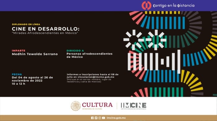 La Secretaría de Cultura del Gobierno federal, a través del Instituto Mexicano de Cinematografía (IMCINE), invita a inscribirse al diplomado “Cine en Desarrollo: Miradas Afrodescendientes en México”, el cual inicia el 4 de agosto con sesiones en línea y gratuitas; el curso está dirigido a personas afrodescendientes en el país, que cuenten con una formación o acercamiento básico a medios audiovisuales y tengan por objetivo crear un proyecto de documental, cuyo tema gire en torno a la afrodescendencia.Esta capacitación forma parte del programa de formación del Estímulo a la Creación Audiovisual en México y Centroamérica para Comunidades Indígenas y Afrodescendientes (ECAMC) y del Centro de Apoyo a la Postproducción (CAPP) del IMCINE.En este sentido, en este curso las y los participantes recibirán clases teóricas y prácticas, además de asesorías personalizadas y sesiones de presentación verbal del proyecto (pitch), las cuales ayudarán a enriquecer sus propuestas. Al finalizar el diplomado, cada participante habrá elaborado una carpeta de producción básica con la cual tendrá la posibilidad de aplicar a distintas convocatorias de financiamiento.El diplomado será impartido por la cineasta mexicana afrodescendiente Medhin Tewolde Serrano, cuyo trabajo se ha enfocado en proyectos de cine y comunicación comunitaria, pasando por la capacitación y formación. Es directora de los cortometrajes ‘Carabalí’ (2021) y ‘Nyanga’, así como del largometraje ‘Negra’ (2020), premiado como mejor documental mexicano en el Festival Internacional de Cine de Monterrey, ganadora del LOLA Award en el Philadelphia Latino Film Festival y del premio de la audiencia en el Chicago Latino Film Festival; además recibió mención honorífica del premio José Rovirosa de la Filmoteca de la Universidad Nacional Autónoma de México (UNAM).Las sesiones son gratuitas y se realizarán en línea, del 4 de agosto al 26 de noviembre de este año. Los módulos que conforman el diplomado son: Módulo 1: Bitácora de investigación, referencia y sinopsis, y texto del director o directora. Módulo 2: Lenguaje cinematográfico, guion, propuesta visual y sonora. Módulo 3: Producción, ruta crítica y presupuesto. Módulo 4: Escritura, asesoría y pitch final.Las bases y estipulaciones de la convocatoria pueden ser consultadas en el sitio web correspondiente https://imcine.gob.mx/Pagina/Convocatoria?uid=4c054cc1-b778-43de-81ef-8bad70d7ffbd. El cierre de inscripciones será el 8 de julio de 2022.JM