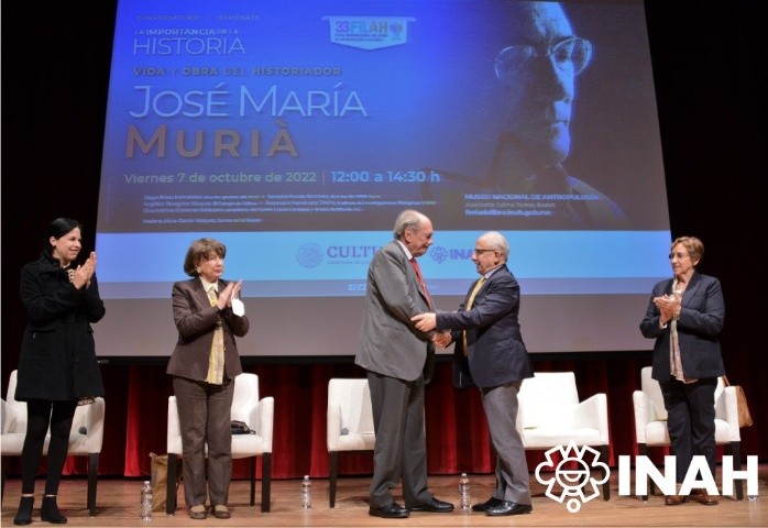 Con la evocación a dos de sus grandes maestros, los filósofos José Gaos y Miguel León-Portilla, el historiador mexicano José María Murià Rouret (1942) fue homenajeado este pasado viernes 7 de octubre por la Secretaría de Cultura federal, a través del Instituto Nacional de Antropología e Historia (INAH), en el marco de la 33 Feria Internacional del Libro de Antropología e Historia (FILAH), con la presencia de familiares, colegas, amigos y discípulos del investigador emérito de El Colegio de Jalisco y del Sistema Nacional de Investigadores (SIN).De esta forma, en el Auditorio Jaime Torres Bodet del Museo Nacional de Antropología (MNA), el investigador del INAH dio gracias por los aplausos y las palabras que le dedicaron por sus más de 50 años de labor en la investigación histórica de Jalisco, México o la Cataluña de sus padres.En este sentido, el director general del INAH, Diego Prieto, señaló que “es clara la convicción de Murià de defender la diversidad en todas las regiones del planeta, por lo que, justamente, como ciudadano del mundo, contribuye a lo que nuestra institución fomenta: el pensamiento crítico, el diálogo abierto y la pluralidad de las ideas y las miradas”.En el panel, conformado por los historiadores Salvador Rueda Smithers, Angélica Peregrina Vázquez y Ascensión Hernández Triviño, cuya moderación estuvo a cargo de la antropóloga Alicia García Vázquez, y con la presencia del ingeniero Cuauhtémoc Cárdenas Solórzano, el titular del INAH distinguió a Murià como un forjador, tanto de historiadores como de instituciones.Si bien organizaciones como el Centro INAH Jalisco, el Archivo Histórico de la Secretaría de Relaciones Exteriores, El Colegio de Jalisco y muchas otras deben sus mejores épocas, inclusive su actual permanencia, a las gestiones de Murià, el titular del INAH destacó que para enaltecer el legado del homenajeado, bastaría referir el papel que desempeñó para indagar archivísticamente y definir la figura que permite, desde los años 80, el resguardo en nuestro país de textos como el Códice ‘Tonalámatl’ de Aubin.Ahora, al tomar la palabra, las historiadoras Ascensión Hernández y Angélica Peregrina, adscritas al Instituto de Investigaciones Filológicas de la Universidad Nacional Autónoma de México (UNAM) y a El Colegio de Jalisco, respectivamente, evocaron episodios específicos de la vida de Murià, como su participación junto a su maestro Miguel León-Portilla, en 1992, en los foros convocados en países latinoamericanos por el gobierno de España, al cumplirse cinco siglos del arribo de Cristóbal Colón al continente americano.Asimismo, las reflexiones de ambos académicos mexicanos –dijeron las académicas– permitieron que las jornadas pasaran de ‘celebrar’ a ‘conmemorar’ el encuentro de dos mundos, pugnando así por dejar atrás planteamientos iniciales eurocentristas.Ascensión Hernández aseguró que “la historia que José María escribe es la de Jalisco, aunque también cultiva la mirada a historias como la de la Guerra Civil española y la del exilio español en México e, incluso, la de bebidas como el tequila y prácticas culturales como la charrería”.Por su parte, Salvador Rueda y Angélica Peregrina hablaron del gusto que el autor de ‘Breve historia de Jalisco’ (1988) o ‘El famoso tequila’ (2015), tiene por ejercer la historia a cielo abierto; es alguien, indicaron, que conoce los ángulos más secretos de su espacio de acción, que camina la geografía, investiga, cobija e impulsa a sus alumnos, en vez de ensombrecerlos cuando destacan, y “que no deja pendientes, a pesar de que siempre tiene algo que hacer”.De esta manera, el homenaje a José María Murià concluyó con una reflexión sobre el quehacer histórico y la enseñanza de la disciplina pues, en sus propias palabras, “la historia es presente y el horizonte infinito”; por ello, el jalisciense instó a priorizar la enseñanza de la historia en la niñez, no desde imposiciones, sino desde una perspectiva personal.Finalmente, Muriá comentó que “un niño de primaria, por ejemplo, creo tiene más curiosidad de saber quién fue el fulano que nombró a la calle donde vive. De igual modo, ese niño debería empezar, antes de la historia de su ciudad y de su país, con la de sus padres y sus abuelos, es decir, su biografía propia”.Para revisar la programación completa de la 33 FILAH, cualquier interesado puede consultar el sitio web: www.feriadelibro.inah.gob.mx.GC