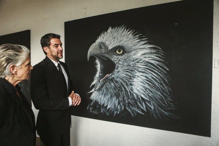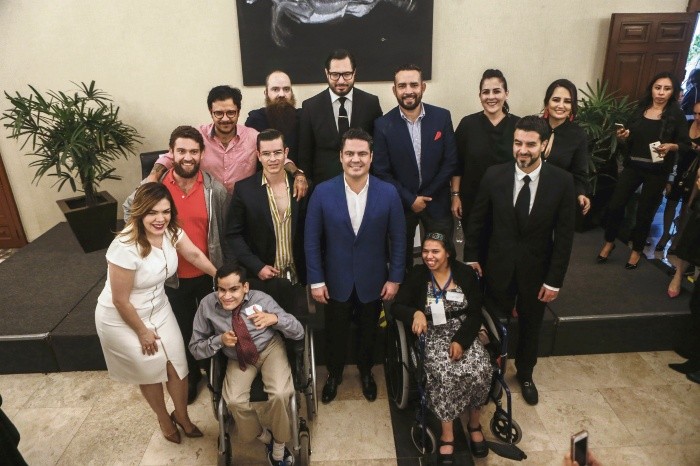 Casa Jalisco se vistió de arte con “Talento con Causa” y la exposición “Grito de Guerra”, de Álvaro Cuevas. Lorena Jassibe Arriaga de Sandoval (presidenta del Sistema DIF Jalisco) comenzó la sesión al referir a Arte con Causa, que tuvo a 11 artistas con exposiciones, que beneficiaron a los infantes del sistema. El DIF Jalisco tiene 4 mil niños en albergues: el objetivo es también que tengan un oficio a los 16 años, comentó Lorena. La iniciativa de los oficios nació en 2014.Myriam Vachez Plagnol, titular de la Secretaría de Cultura estatal, platicó enseguida sobre esta culminación del proyecto. Myriam señaló que se convocó tanto a artistas plásticos consolidados como emergentes. La obra de todos se trabajó ex profeso para Casa Jalisco. Del arte y la cultura, la secretaria añadió que esto cambia vidas.Posteriormente se entregaron los reconocimientos. El primer receptor fue Yuri Zatarain, con su obra “Jalisco Vivo”. El resto de los artistas fueron Aram Cortés (“Pinté en la Penca”), Ignacio Aldana (“Rostros de México”), Juan Carlos Santoscoy (“Matices de Jalisco”), Simón Cruz (“Visiones”), Santiago Alarcón (“Biopsa Inmortal”), Irene García (“Mujeres Jaliscienses en el tiempo”), Karla de Lara (“Reproches”) y Álvaro Cuevas. El reconocimiento del artista Claudio Limón (“Mi Tierra Querida”) lo recibió Magdalena López; Alberto Zuno recibió el reconocimiento a Olga Zuno (“Color con sabor a Jalisco”). Santiago Alarcón, en representación de los artistas, brindó unas palabras: “Para nosotros ha sido importante poder contribuir con el DIF y con las distintas casas-hogar”. El artista también agradeció a Lorena y a Aristóteles Sandoval, Gobernador de Jalisco, la apertura de su casa durante este sexenio para recibir el arte por una buena causa.Tras los reconocimientos se leyó una semblanza de Álvaro Cuevas, quien recurre a su técnica del huellismo: pintar a través de las huellas de los dedos. El artista ha tenido exposiciones en México y en el extranjero. Al tomar el micrófono, Cuevas agradeció la presencia de los asistentes a Casa Jalisco, para después referir al hilo nacional de donde tomó el nombre de su obra: “Grito de Guerra”. Con la técnica de huellismo formó animales, trazos y formas que expresan gritos, llantos y el llamado al rugir del cañón, comentó.Para los mexicanos que se identifiquen con la frase, exhortó a realizar una revolución cultural para dejar huella: “Viva México”, fue el cierre de su intervención.Aristóteles Sandoval hizo uso de la voz para agradecer a la comunidad artística, no solo a los artistas plásticos presentes: “Es parte fundamental de toda sociedad”. De Casa Jalisco, comentó que a pesar de tener nuevos huéspedes cada seis años, es un espacio de los jaliscienses.Sobre la exposición de Álvaro, titulada “Grito de Guerra”, apuntó que México necesita “gritos de paz”, mismos que se generan a través del arte. A propósito de la cultura, Aristóteles mencionó esfuerzos de su gestión, como la creación del Ballet de Jalisco y el regreso de las temporadas de ópera en el Teatro Degollado con la Orquesta Filarmónica de Jalisco.