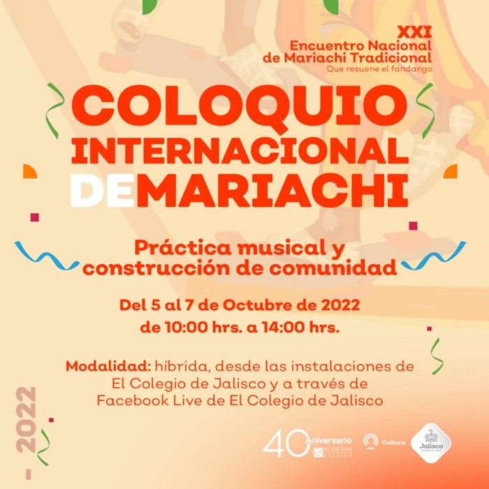El Encuentro Nacional de Mariachi Tradicional (ENMT), que organiza la Secretaría de Cultura (SC) de Jalisco, cuenta cada año con un espacio para la investigación y difusión académica, El Coloquio Internacional de Mariachi, un encuentro entre investigadores, portadores y músicos, que se realiza en coordinación con El Colegio de Jalisco A.C., el cual se inauguró este miércoles 5 de octubre, para dar inicio a tres días dedicados al estudio del mariachi y sus aportaciones en el ámbito social.Rodrigo de la Mora, coordinador del Coloquio Internacional de Mariachi, que en esta ocasión se titula “Práctica musical y construcción de comunidad”, celebró que después de dos años el coloquio se realice de manera presencial y pueda reunir a más de 30 investigadores, así como a promotores del mariachi de México, Colombia, Chile y Países Bajos.Para esta edición y de acuerdo con el tema central del ENMT “Qué resuene el fandango”, De la Mora señaló que las ponencias se centran en distintos estudios sobre el impacto social del mariachi en las comunidades de Tierra Caliente, a través de tres líneas: el sentido social de las prácticas del mariachi, la historia y prácticas del fandango mariachero; y la música y músicos del mariachi. Por su parte, Mario Limón, Director de Gestión Integral de Proyectos de la SC, aseguró que este Coloquio “deberá generar los ejes de consulta para abrevar hacia acciones que tengan, como plataforma de arranque, un examen más consciente de la realidad social en la que incidimos con proyectos públicos. En este sentido, es importante reconocer que desde el gobierno estatal hay que estar atentos y receptivos de los hallazgos e insumos que produce la academia”.Así, tras la inauguración se realizaron las primeras tres mesas de trabajo dedicadas al sentido social de las prácticas del mariachi, a los instrumentos y semblanzas de las y los músicos; y la música del mariachi.El día de mañana, jueves 6 de octubre, las actividades se realizarán de las 10:00 a las 14:00 horas, en el Auditorio Carmen Castañeda, de El Colegio de Jalisco, o también se puede seguir la transmisión por internet a través de la liga: https://www.facebook.com/Coljal.La segunda jornada se dividirá en tres mesas de trabajo en donde, además de analizar el aspecto social y el legado de las y los músicos de mariachi, se abordará el tema de la historia y prácticas del fandango mariachero. Asimismo, se presentarán dos libros. Por otra parte, el programa del Coloquio Internacional de Mariachis e puede consultar en: https://www.coljal.mx/.MF