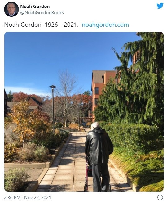 El escritor estadounidense Noah Gordon, autor de éxitos de ventas como "El médico", falleció este lunes a los 95 años en su casa, anunció su familia en un comunicado."Con gran tristeza, la familia de Noah Gordon anuncia que Noah falleció el 22 de noviembre de 2021 en la intimidad de su casa", señala un comunicado de la familia en la página oficial del novelista nacido el 11 de noviembre de 1926 en Worcester, Massachusettes.Hijo de una judía, Gordon empezó estudiando medicina, como querían sus padres, pero al cabo de un semestre se pasó al periodismo.Entre otros medios, comenzó a trabajar en el diario Boston Herald en 1959 y luego se convirtió en el redactor jefe de la revista Science. Después se pasó al periodismo independiente para escribir artículos científicos y novelas.Su primera obra, "El Rabino", la publicó en 1965 y "El comité de la muerte", cuatro años más tarde.Pero su gran éxito llegó en 1986 de la mano de "El médico", el primero de la trilogía de los Cole, ambientado en el siglo XI y que sigue al protagonista Robert Jeremy Cole desde su niñez en Inglaterra, después en Europa y sus estudios en el colegio médico en Ispahan, actual Irán, donde aprendió del gran sabio Avicena.En 1999, las libreros españoles de la Feria del Libro de Madrid eligieron "El médico" como una de las diez novelas más populares de todos los tiempos."El Chamán" (1992) y "La doctora Cole" (1995) integran la trilogía del prolífico autor de éxitos como "El último judío". En 2007 publicó su última novela, "La bodega", ambientada en España, en la Cataluña de finales del siglo XIX, durante las guerras carlistas, con el fondo de la viticultura.AF