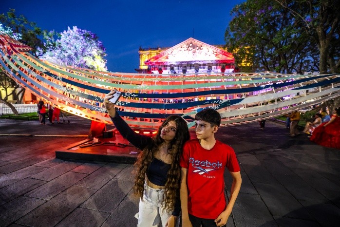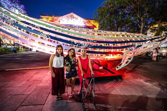 Uno de los propósitos del Festival Cultural de Mayo en Jalisco es llevar el arte a lo público y aproximar a los tapatíos, desde la calle y el andar diario, a una experiencia cultural significativa, pero que también invite a la reflexión y abra nuevas perspectivas de la mano del arte."Ecos, el canto de lo desconocido", es una instalación artística e interactiva de gran formato, dispuesta en la Plaza de la Liberación del Centro Histórico, que desde el 8 de mayo hasta el 8 de junio llevará a la gente de todos los días a una concientización sobre la vida marina y el impacto de los seres humanos en el océano. La instalación, que forma parte del Festival Cultural de Mayo, presenta una escultura, de tamaño real, de una ballena azul de un año de edad, momento determinante en la vida de estos gigantes mansos, pues es cuando se separan de su madre y se adentran a solas y para siempre en la inmensidad azul del mar.La obra, creada por Mathias Gmachl, incorpora elementos sonoros que remontan a la atmósfera burbujeante y submarina donde se desarrollan estos cetáceos, además de reproducir sus cantos misteriosos con los que se comunican entre sí. Es decir; los tapatíos podrán "escuchar" la voz de esta ballena que, con apenas un año, ha iniciado la soledad de su vida."Ecos, el canto de lo desconocido", llamó de inmediato la curiosidad de los tapatíos, que se aproximaron a la escultura para tomarse fotos, escucharla, y asombrarse con las grandezas -y también la fragilidad- de la naturaleza, reproducida por medio del arte y llevada al espacio público. También los turistas se retrataron frente al cetáceo hecho de metal. Así fue para Alondra y Darío, que asistieron especialmente al Centro Histórico para ver la escultura. "Está muy bonita la ballena", aseguró Alondra. La familia de Pina, Mía, Noah y Sandra, quedaron sorprendidas al ahora saber que ese es el tamaño real de una ballena de un año. "Es muy impresionante, muy bonito, y qué mejor que en las calles de Guadalajara", compartió la señora Pina. A David, por su parte, le pareció muy buena la iniciativa de llevar el arte a lo público. "Qué padre que traigan estas cosas al Centro, yo ni me imaginaba que una ballena bebé era así de grande, uno se queda chiquito", dijo. Mucha gente ni siquiera tendrá la oportunidad de ver a una ballena en vida: "Ecos, el canto de lo desconocido", es entonces una oportunidad única para aproximarse a las grandezas frágiles y espectaculares que habitan en nuestro planeta, que recorren los océanos, y que ahora se encuentran presentes en las calles de Guadalajara por medio del Festival Cultural de Mayo en Jalisco.MF