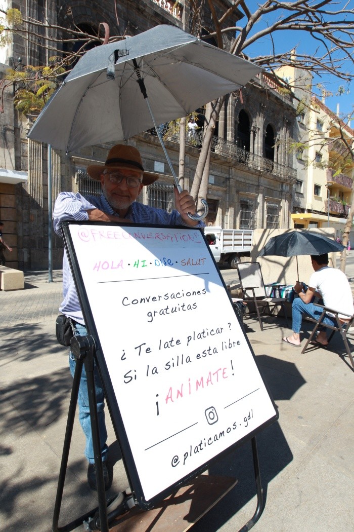 En ocasiones, basta una oportunidad o que un suceso nos conmine a actuar para que emprendamos alguna tarea determinada; esto fue lo que hace casi cinco años le sucedió al español Adrià Ballester, quien decidió brindar un espacio en la ciudad para aquellas personas que desearan hablar, así simplemente, conversar de lo que fuera sin restricciones, tal como reza la misión del movimiento Free Conversations que, desde entonces, se fundó en Barcelona y cuenta ya con presencia en diferentes zonas del mundo. Concretamente, en Guadalajara, es Gaal Cohen, tapatío por adopción, quien ha llevado a cabo esta labor desde mayo pasado, en Paseo Alcalde, justo frente al Museo del Periodismo y las Artes Gráficas (Mupag).Fue a través de un artículo periodístico -en el periódico “La Vanguardia”, de Barcelona-, nos cuenta Cohen, que se enteró de lo que hacía Ballester, “contaba su historia, y cómo se sintió mejor después de platicar con un desconocido tras un mal día en su trabajo; y yo que vivo en una urbe donde vive mucha gente, pensé que debería haber mucha gente a la que le vendría bien sentarse a platicar con alguien”.Así, refiere el francés, dentro del Free Conversations Movement, que tiene presencia en muchos países, “Guadalajara fue la primera ciudad de América Latina donde hubo alguien que comenzara con estas pláticas (ahora somos tres ya). Este movimiento se dedica, fundamentalmente, a escuchar. Se habla de lo que la persona quiere, y es algo muy bello y particular, la verdad. Yo lo hice para regresar a la comunidad algo que sé hacer -hablar-, porque me han adoptado aquí como tapatío desde hace 30 años”.Ahora bien, destaca Cohen, “estuvimos sin poder hacer nada por poco más de un año, debido a la pandemia; ahora, no sólo tenemos apoyo del movimiento, también ayuda Cultura Guadalajara, que facilita tramitar el permiso del ayuntamiento para estar aquí en Paseo Alcalde”.México y la curiosidadNacido en Francia de madre flamenca y padre judío marroquí, Cohen siempre se sintió “atraído por México. Desde muy pequeño pasaba por una agencia de viajes donde siempre había imágenes de este país y, desde que llegué acá en 1973, recorrí por medio de aventones el territorio (y los Estados Unidos); después, con mi esposa, decidimos vivir aquí, de tan bonito que es”.Aunque trabajó por mucho tiempo en el rubro turístico, este fluido conversador se formó en la medicina tradicional china y ahora realiza distintos proyectos artísticos de fotografía; respecto de sus pláticas, afirma disfrutarlo mucho, “yo no soy psicólogo, pero creo que hay gente que viene porque tiene un problema o inquietud y piden orientación, otros tienen inquietudes existenciales (Dios, la Vida, la Muerte), otros se sienten atraídos por curiosidad, también hay quien sólo desea compartir y enseñar cosas (yo aprendo de todos)”.Escuchar a la gentePara este movimiento, existe una coordinadora para Latinoamérica, Ana Maldonado, en Quito, Ecuador; así, explica Cohen, “para involucrarse y convertirse en voluntario hay que establecer comunicación, para luego entrenarse en esto de conversar, sin problematizar ni esgrimir opiniones. Ahora somos muchos y tenemos reuniones frecuentes -yo diría más o menos una al mes- en las que hablamos acerca de cómo enfrentar diferentes situaciones y cómo hablar acerca del movimiento, puesto que lo representamos”.En este sentido, advierte el naturalizado tapatío, hoy día se trabaja para convertir este movimiento en una ONG formal, aunque la misión y objetivo sigue siendo “escuchar a la gente y ayudar a que se levanten, si acaso lo pasan mal. Ahora, ayudar no es la meta, porque puede que no la necesites y sólo desees hablar, con eso basta. Hay de todo; y soy consciente de que estoy en un sitio privilegiado”.Esto es un compromisoEsta experiencia, afirma Cohen, le permite saber que “el tapatío tiene una ingenuidad muy bella y espontánea, por eso no paro, cuando no llega uno se acerca otro a mirar o leer el pizarrón. Esto ha sido muy enriquecedor para mí. Pienso que cuando uno hace algo, como este voluntariado, la gente lo disfruta por igual y comparte su gozo”.En Guadalajara son tres las personas que toman parte en este movimiento de conversación libre, es una actividad que -enfatiza el también fotógrafo- “es asimismo una entrega, una responsabilidad, algo que requiere dedicación, demanda compromiso, porque al final la idea puede resultar muy bella pero, con todo, hay que llevarla a cabo”.Si a Gaal Cohen (mejor conocido como “Yayo”) es posible encontrarlo en Paseo Alcalde, frente al Mupag, desde las 11 a las 15 horas, más o menos; el interesado encontrará en la Plaza frente al Templo Expiatorio (López Cotilla y Díaz de León) a Adriana Ramos, pero también -aunque con visitas a personas de edad avanzada en sus domicilios- participa Diana Jiménez, pero ella no se ubica en un lugar determinado.TOMA NOTAEl origenEl movimiento Free Conversations se inició en 2017 por parte de Adrià Ballester quien, tras un mal día de trabajo, decidió dar un paseo por Barcelona y, después de unas horas, entabló una larga conversación con un desconocido y gracias a ello se dio cuenta de lo importante que es hablar con las personas a partir de un punto de vista distinto del nuestro. Tras esa experiencia, decidió ofrecer conversaciones gratuitas una vez a la semana en el centro de la ciudad, con el propósito de que la gente pudiera ir a hablar cuando lo necesitara o quisiera, además, también significaba poner a disposición del público un lugar donde expresarse libremente sin miedo a ser juzgado.EL DATOContáctaloSitio web: thefreeconversationsmovement.comFacebook: facebook.com/TheFreeconversationsMovement/Instagram: @freeconversationsOtros: @adriaballester/ @gaalcohen/ @platicamos.gdl
