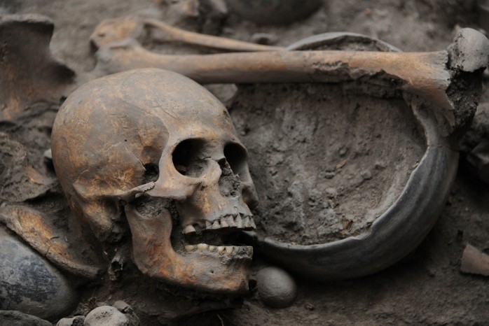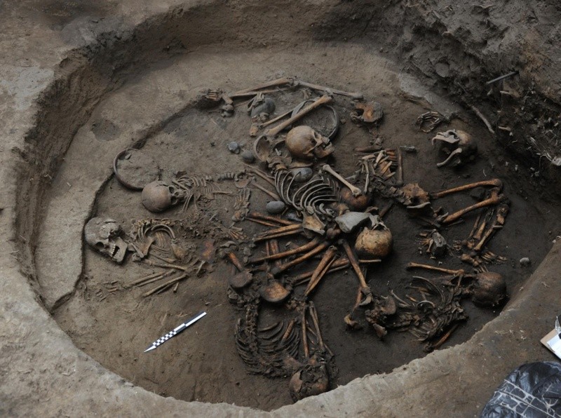 Una espiral de huesos humanos, restos óseos de una decena de personas que fueron entrelazadas en la muerte hace dos mil 400 años, fueron hallados durante las labores de salvamento que especialistas del Instituto Nacional de Antropología e Historia (INAH) realizan en la zona de Tlalpan.Se trata del hallazgo más peculiar que ha realizado el INAH en la llamada aldea preclásica de Tlalpan, desde que iniciaron los trabajos de salvamento arqueológico en terrenos de la Universidad Pontificia de México, y se suma a otras que dan nuevos bríos a los estudios del periodo formativo en esa área de la Ciudad de México.El descubrimiento se registró metro y medio bajo el sitio que ocupó el oratorio y es el primer entierro con esa cantidad de individuos reportado a la fecha en la zona, detalló el Instituto en un comunicado.En un frente de excavación próximo a la barda de un terreno contiguo a la UPM, un equipo coordinado por la arqueóloga Jimena Rivera Escamilla Martha y con la participación de la arqueóloga García Orihuela, se localizó el entierro en una fosa con dos metros de diámetro. De los 10 esqueletos, se ha identificado que dos corresponden a individuos femeninos y uno masculino, detallaron las antropólogas físicas Lucía López Mejía y Sonia Rodríguez Martínez . En su mayoría son subadultos (adultos jóvenes), también se encuentra un adulto, un infante que tenía de entre tres y cinco años de edad al momento de morir, y los restos óseos de un niño de meses de edad.A partir de lo observable, un par de individuos presentan deformación cefálica intencional, también se detecta mutilación dental en algunos casos, patologías como osteocitos en las vértebras y un desgaste dental generalizado. A estos personajes, abundó, les fueron ofrendados cajetes, cuencos, ollas y tecomates, miniaturas y grandes. A algunos les colocaron esferas cerámicas y piedras en las manos.Para este asentamiento en Tlalpan se ha confirmado un periodo de ocupación a lo largo de 500 años, en el llamado periodo Formativo Medio y Tardío, entre las fases Zacatenco (700-400 a.C.) y Ticomán (400-200 a.C.), y que se trató de una de las aldeas establecidas al oriente de Cuicuilco, cuando éste iniciaba su crecimiento y cobraba relevancia a nivel regional.Para la especialista de la Dirección de Salvamento Arqueológico del INAH, se puede estar de nuevo ante un momento muy importante para los estudios sobre los periodos Preclásico o Formativo en la Cuenca de México, como lo fue entre las décadas de 1960-1990, cuando se excavaron sitios como Tlatilco, Temamatla y Tlapacoya o Terremote-Tlatenco.En este milenio, otros hallazgos de contextos preclásicos, como la zona de enterramiento en Zacatenco, próximo al Acueducto de Guadalupe, en 2017; y las exploraciones en Tlalpan, dan nuevas perspectivas a estas investigaciones.Rivera comentó que hace dos años dirigió el salvamento arqueológico en el número 185 de la calle Benito Juárez, donde se ubicó otra sección de la aldea preclásica de Tlalpan, la cual posiblemente tuvo sus inicios hacia 800 a.C., en la fase Tetelpan.Estos fechamientos parten de la cerámica asociada a estos contextos y que ha sido ampliamente documentada, por lo que no hay duda que se está ante una unidad doméstica rural del periodo Formativo, con sus áreas de habitación y de entierros. Otros de los indicadores de la temporalidad del sitio son los alineamientos hechos con cantos de río.En el salvamento arqueológico realizado en 2006 por Alejandro Meraz, en la parte suroeste de los terrenos de la UPM se detectaron 18 fosas troncocónicas. Cabe explicar que estos elementos excavados hasta llegar al tepetate o suelo natural, son llamados así por su forma de cono truncado o botellón, es decir, tienen un diámetro mayor en el fondo que en la boca, y servían como lugares de almacenamiento, depósitos o tumbas, o eran reutilizados para todos estos fines.Tras cinco meses de tareas de salvamento en la UPM, el equipo ha localizado más de 20 fosas troncocónicas, casi todas en una misma área; seis contenían entierros individuales, en su mayoría de adultos. La experta hizo hincapié en los círculos perfectos que lograban quienes excavaban estas fosas, logrando diámetros de 1.20 metros o 1.50, hasta de 1.80 a 2.30 m.Rivera recordó que los salvamentos arqueológicos permiten recuperar información sobre las sociedades del pasado, aunque la excavación resulta segmentada o limitada a los espacios donde se erigirá obra constructiva (como es el caso de la UPM), un adecuado registro ayuda --una vez que inicia el análisis-- a proponer interpretaciones sobre los procesos, dinámicas y relaciones sociales. La aldea de Tlalpan se suma ahora, con mayor nitidez, al mapa de los asentamientos del periodo Formativo de la Cuenca de México. IM