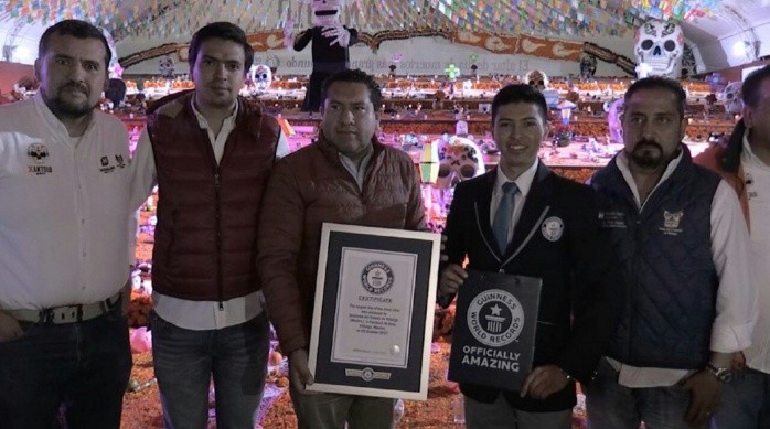 Hidalgo rompió un nuevo récord Guinness con el Altar de Muertos más grande del mundo, como parte del compromiso del gobernador Omar Fayad, por salvaguardar el patrimonio material e inmaterial, no sólo del estado, sino de todos los mexicanos, así lo dio a conocer el secretario de Cultura del estado, Olaf Hernández Sánchez. El sábado por la tarde, Carlos Tapia Rojas, adjudicador del récord Guinness para México y Latinoamérica, tras constatar las características de la ofrenda instalada en la Plaza Juárez de Pachuca, entregó la certificación a las autoridades estatales, y cuya extensión abarcó 790 metros cuadrados. En un comunicado, el gobierno de Hidalgo señaló que en esta ocasión, se tomaron en cuenta elementos que todo altar mexicano debe tener, tales como sal, velas, calaveras de azúcar, amaranto y chocolate, panes de todo el estado, flores, entre otros.Sobresalieron los elementos del Xantolo hidalguense, como la flor de cempasúchil, que al igual que el aroma del copal atrae a las almas, alegorías de las flores, productos de maíz, aguardiente, cerveza, moles especiales, dulces de calabaza, camote, almibares de agua miel, frutos de distintas cosechas, cítricos y ollas de chocolate. Así también, el altar alude a la representación de los elementos naturales como el agua, la tierra representada en las semillas, el aire y el fuego representado en las velas, dijo.Para la ocasión se elaboró una catrina de aserrín, (tradicional en el municipio de Acaxochitlán) y los siete niveles de la ofrenda que simbolizan los 7 pecados capitales, al mismo tiempo que se tiene la creencia de que es un número sagrado.Como parte del procedimiento para la adjudicación de un nuevo Guinness World Record', desde su colocación se envió a las oficinas representativas en Nueva York, Estados Unidos, videos, certificados topográficos ante notario y lista de los materiales a utilizar en la ofrenda, con la finalidad de recabar suficiente evidencia que respaldara dicho reconocimiento.Actualmente nuestro país cuenta con nueve patrimonios de la humanidad en el ámbito inmaterial y cuatro de ellos están en el estado de Hidalgo, mismos que se comparten con todo el país, por eso es muy importante seguir promoviendo y difundiendo esta tradición, recordó Olaf Hernández.El secretario de Turismo, Eduardo Javier Baños Gómez, llamó a visitar los distintos rincones del estado que cuentan con un gran mosaico de tradiciones y gastronomía en estas fechas, en las que se celebran actividades conmemorativas al día de muertos, entre las que destaca las festividades del Xantolo.