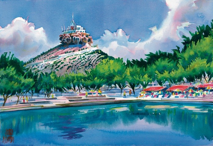 El arte de la acuarela tiene en el paisaje a un protagonista, que en EL INFORMADOR semanalmente se presenta como portada de la sección de viajes: Pasaporte. Jorge Monroy es el artista plástico encargado de las obras, de las que hizo una selección para la exposición “Pueblos Mágicos”, en la Cámara de Comercio. La serie es una colección de paisajes mexicanos, con un acervo que el artista plástico ha forjado a lo largo de los años como colaborador de esta casa editorial.Para esta exposición se escogieron las piezas que retratan algunos Pueblos Mágicos: “Obviamente no todos. Aquí habrá 50, se trata de que al menos haya uno de cada Estado de la República, y todos los que hay en Jalisco. Pero no hubo necesidad de hacer una selección de las favoritas”, platica el artista en entrevista.Monroy recuerda cómo comenzaron a surgir estas obras: “Tengo 43 años colaborando en el periódico, haciendo las ilustraciones en las portadas de lo que primero fue el suplemento cultural. Cuando acabó el suplemento, se inició con Pasaporte. Desde 1998 empezamos a hacer temas de paisajes mexicanos, con diferentes temáticas: el interés histórico, arquitectónico, etc. Se incluyen temas de zonas arqueológicas, bellezas naturales, Pueblos Mágicos, monumentos culturales. Y últimamente también he hecho de tradiciones y costumbres de México, y del Patrimonio de la Humanidad. Todo lo que sea de interés para que toda la gente que vea el suplemento y la imagen: lo tome como una invitación para ir a visitar los lugares”.‘México no se acaba’Con piezas de mediano formato (38 x 54 centímetros), la exploración con esta técnica ha sido de su agrado, pues “desde estudiante siempre me gustó la acuarela y el paisaje. Esta comisión que se me encargó fue casi mandada a hacer para lo que a mí me gusta. A través de todos estos años ha sido muy gratificante hacer estas acuarelas, eso me ha permitido también viajar y conocer todos estos lugares para retratarlos. Aparte de que realmente siempre es lo que me ha gustado hacer. No ha sido para nada rutinario, al contrario: el entusiasmo nunca ha decaído, siempre buscando nuevos rincones, y México no se acaba. Ya llevamos prácticamente más de mil temas, y sin repetir”.Además de las acuarelas para las portadas del suplemento, Jorge Monroy ha seguido su carrera de artista plástico, en la que ha incursionado en el muralismo: “Simultáneamente con el trabajo para el periódico siempre he hecho otras cosas. Hago también ilustraciones para libros, cuadros de mayor formato, encargos, retratos. Recientemente, desde 2010, he estado haciendo murales, ya no lo he dejado de hacer, aquí en la ciudad. Hay uno donde será la exposición, en la Cámara de Comercio, hay otro en la zona arqueológica de Guachimontones, en el Hospital Civil, en la UNIVA”.Monroy tiene en sus próximos proyectos otros murales, además de las colaboraciones con EL INFORMADOR: en Etzatlán hará un mural para un museo, mientras que en la ZMG participará en dos proyectos para la escuela de medicina de la UdeG.¡Asiste!Exposición “Pueblos Mágicos” de Jorge Monroy en la Cámara de Comercio (primer piso), a partir de hoy (viernes 15 de febrero) a las 13:00 horas y hasta el 20 de marzo; sábados de 08:30 a 13:00 horas y de lunes a viernes de 09:00 a 19:00 horas. Abierto al público en general (entrada por Niño Obrero 15).