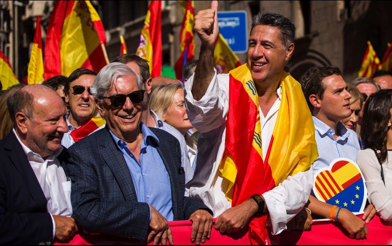 El nobel de literatura hispano-peruano Mario Vargas Llosa clausuró este domingo la multitudinaria manifestación de Barcelona contra la independencia de Cataluña asegurando que "la democracia española está aquí para quedarse, y ninguna conjura independentista la destruirá"."Queremos que Cataluña vuelva a ser la capital cultural de España como era cuando yo vine a vivir aquí", dijo Vargas Llosa, que vivió en la capital catalana en los años 1970, y acusó al nacionalismo de causar "estragos"."La pasión puede ser destructiva y feroz cuando la mueven el fanatismo y el racismo. La peor de todas, la que ha causado más estragos en la historia, es la pasión nacionalista", prosiguió el escritor desde el escenario, instalado frente a la Estación de Francia, donde concluyó la marcha."España también es una tierra de libertad, de legalidad, eso, el independentismo no lo va a destruir", sostuvo."Se necesita mucho más que una conjura golpista (...) para destruir lo que han construido 500 años de historia, no lo vamos a permitir", afirmó. "Aquí estamos ciudadanos pacíficos que creemos en la coexistencia y la libertad. Vamos a demostrarles a esos independentistas minoritarios que España es un país moderno".Los independentistas, dijo refiriéndose a España, constituyen "una conjura que quiere reducirlo a un país tercermundista", añadió, concluyendo su discurso con un "¡viva la libertad, visca Catalunya, viva España!".