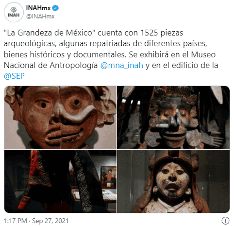 Dos museos mexicanos inauguraron esta semana una exposición gigantesca de mil 525 piezas prehispánicas y de otras épocas, más de la mitad de las cuales fueron recuperadas del extranjero.Desde hace tiempo México ha tenido un problema con los coleccionistas y traficantes que sacan artefactos del país, a pesar de que esa práctica fue declarada ilegal desde 1972.Sin embargo, 881 de las esculturas, vasijas y otros artefactos exhibidos en la Ciudad de México fueron devueltos, algunos de manera voluntaria por coleccionistas extranjeros o tras su decomiso policial en el exterior. Fueron repatriados desde Estados Unidos, Italia, Francia, Alemania y Holanda.Es la primera vez que la mayoría de las piezas son vistas en México.Muchas de las 644 piezas restantes fueron decomisadas en el país o estuvieron guardadas mucho tiempo en bodegas. Cuarenta y seis de ellas fueron prestadas por museos de otras naciones."La ganancia es la posibilidad que vamos a tener los mexicanos ahora de volver a ver estas piezas, o incluso a verlas por primera vez", dijo Miguel Ángel Trinidad, uno de los curadores.Un ejemplo es una impresionante estela maya que muestra a un caudillo sujetando a un rival capturado. Previamente estuvo en exhibición en Los Ángeles, California.La exposición se llama "La Grandeza de México", y los objetos exhibidos pertenecen a culturas prehispánicas como los mayas, aztecas y olmecas, así como a periodos históricos posteriores. Las piezas estarán en exhibición en el Museo Nacional de Antropología de la Ciudad de México y en el Museo de la Secretaría de Educación Pública, construido en la época colonial.La exhibición coincide con el 500 aniversario de la conquista de la Ciudad de México por parte de los españoles en 1521 y el 200 aniversario de la consumación de la independencia de México frente a España en 1821.Sigue leyendo…Si te interesó esta noticia y quieres saber más, entonces descarga y descubre INFORMAPlus, la aplicación digital de EL INFORMADOR, en donde tenemos contenidos exclusivos, seleccionados por nuestros editores, para darles una experiencia más completa a los lectores.Descarga la aplicación y pruébala GRATIS por treinta días.Si eres suscriptor de EL INFORMADOR tu acceso está incluido, solicítalo al 33 3678-7777AF