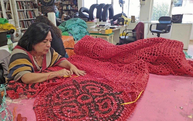 Con el ilustrativo nombre de “Tejedoras de lazos”, la artista visual Betsabeé Romero exhibe actualmente -para cubrir el Pabellón de México en la Expo Universal de Dubái 2020, que se realiza en Emiratos Árabes por estos días- una pieza de tejido multicolor para la cual contó con la colaboración de numerosas mujeres artesanas de Etzatlán, Jalisco, para elaborar una obra representativa, evocadora e ingeniosa que también combina tradición y modernidad.Mujeres trabajandoEn palabras de la artista, fue “invitada a hacer una propuesta para esta exposición mundial; ahora, lo que me entusiasmó -primero que nada- fue que se pidiera una pieza de arte contemporáneo, y a una mujer. Así, pensé que no estaría completa mi idea si no proponía como concepto algo que significara una colaboración con el arte popular, uno de los elementos más importantes del patrimonio cultural del país”.Ahora, sin pensar en una zona en específico, establece Romero, “busqué que, desde los materiales y la elaboración de la pieza, hablara por sí misma desde la fachada del pabellón. Lo que perseguía era que nos enviara significados importantes, de ahí que eligiera el tejido; en la búsqueda, encontré una pieza donde el tejido cubría al pueblo, elaborada por un taller de tejedoras pero, además, de mujeres laborando juntas, evidenciando una gran capacidad colaborativa, como Penélopes empoderadas por el trabajo. Por ello investigué sobre Etzatlán, esta tradición de tejido y a buscar quién podía ayudarme”.Hecho a manoDe esta forma, Romero dio con Lorena Ron, quien encabezaba este trabajo colectivo de esa comunidad de mujeres artistas, el encuentro fue fructífero e hizo posible una “pieza única” para una exposición que da “una importancia mayúscula al futuro y las nuevas tecnologías, pero creo que, tras un largo confinamiento, era fundamental que el pabellón tuviera ese color y temperatura de lo hecho a mano. Este expo es un evento presencial que debe recordarnos el calor de la mano del hombre y lo que significa en cuanto a valores que hay que preservar”.Convencida de que el arte contemporáneo puede encontrar también raíces en lo tradicional, la artista sostiene que “la pandemia me llevó, hoy más que nunca, a reflexionar en nuestra posición como artistas de cara al futuro, pero asimismo ante el pasado, ante nuestras raíces; de ese modo, establecer más formas de sinergia interdisciplinarias. El arte contemporáneo implica simultaneidad y diversidad de culturas, y México tiene de eso una gran riqueza”.Estrella centrífugaDestaca Romero que, tratándose de una pieza de gran magnitud, “fue complejo” el proceso de elaboración, pero “admiro mucho la organización y eficacia del trabajo hecho en Etzatlán: la pieza se conforma por hexágonos tejidos en crochet, unidos a través de lazos (de ahí el nombre de la obra, como representación de la unión). Mi intención era que se conformara por líneas de distintos colores que se proyectan desde el centro y se proyectan hacia los tres lados del edificio, como estrella centrífuga (conformación geométrica que comparten con las telarañas)”.En estos términos, “Tejedoras de lazos” es una pieza que cubre en su totalidad el edificio que alberga el pabellón mexicano en Dubái, miles de elementos (hexágonos tejidos con rafia de 12 diferentes colores) que se unen para comprender alrededor de 750 m2 (metros cuadrados) y que, como otro rasgo sorprendente -refiere Romero- “se elaboraron todos en dos meses”.Finalmente, la artista nacida en la CDMX hizo referencia al “muy complicado” proceso de instalación de la pieza, para lo cual contaron con una empresa “especializada en tejidos”, cuyos empleados eran “fundamentalmente de la India, Bangladesh y Pakistán, países con una larga tradición de grandes tejedores, como México; en eso, era importante que una mujer de Etzatlán tomara parte del proceso -la misma Lorena Ron- para que tuviera conocimiento la comunidad de cómo se instaló esto en tres días consecutivos, de forma tan manual como en su elaboración”.La Exposición Universal Dubái 2020 -pospuesta debido a la pandemia-, bajo el eje temático: “Conectar nuestras mentes y construir el futuro”, se celebra desde el 1 de octubre de este año y permanecerá montada hasta el 31 de marzo de 2022. La enorme muestra cuenta con pabellones para más de 190 países y prevé, a lo largo de seis meses, que las visitas registradas sobrepasen los 25 millones de personas.En 2019, la Asociación de Mujeres Tejedoras de Etzatlán (Región Valles, Jalisco) se dio a la tarea de elaborar una larga serie de tejidos de crochet que, unidos, cubrieron el techo del Pabellón Artesanal de la Casa de Cultura y algunas calles del centro; la obra -llamada “Cielo tejido”- hizo a estas artistas las poseedoras de un récord Guinness que hoy día sigue vigente por la extensión de un manto tejido que alcanzó más de 2 mil 800 metros cuadrados.