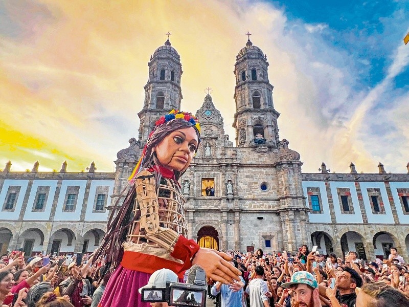 “Amal”, la niña refugiada por la guerra en Siria, pasó por Zapopan la tarde de ayer, en su transitar por el mundo en búsqueda de su madre. A su visita acudieron más de 24 mil personas al centro zapopano.La mayoría eran niños acompañados de sus padres y abuelos, quienes querían saludar a esta niña gigante. La recibieron con pancartas con mensajes de amor y solidaridad.Se trata de una marioneta de 3.5 metros, que representa los desafíos que recorren los niños desplazados por la guerra. Hasta 2021, 2.5 millones de niños y niñas como “Amal”, estaban refugiados en algún país, según datos de Unicef.“Amal” saludó y abrazó a sus nuevos amigos, con quienes bailó mientras paseaba por el Andador 20 de Noviembre hasta llegar a la Basílica de la Virgen de Zapopan.“Lo que más me gustó fue el momento de convivió familiar”, dijo Natalia, una niña que acudió a conocer a la muñeca, junto con su mamá y hermanos.Mariana Lozano, su madre, se enteró por Facebook de la visita de “Amal” y decidió traer a sus hijos para sensibilizarlos ante las consecuencias de la guerra.En su trayecto, “Amal” escuchó al mariachi tradicional “Los Pitayeros” y bailó el “Jarabe tapatío” con el ballet folclórico del Centro Metropolitano del Adulto Mayor. Al llegar al quiosco de la Plaza de las Américas, Juana Franco, representante de pueblos originarios, le entregó una corona. En ese punto, cientos de niños y niñas mostraron sus dibujos; pequeñas réplicas de papel de “Amal” pegadas a un palo como banderita, con su vestido coloreado al gusto de cada menor, los cuales fueron alzadas mientras le gritaban “¡‘Amal’, te quiero!”.Con tan sólo 10 años, “Amal” ha recorrido 120 ciudades de Europa, América Latina, y este año llegó a México.Con su caminata por el mundo, la ONU busca promover los derechos de los migrantes, refugiados y niños, quienes son las principales víctimas de la guerra al tener que dejar sus viviendas por huir de la violencia.“Ojalá que nos sensibilicemos sobre esta búsqueda que hace ‘Amal’ y que representa la lucha de miles de niños atrapados en la guerra”, dijo la presidenta del DIF Zapopan, quien dio la bienvenida a “Amal” a la ciudad.Para finalizar su paso por Zapopan, la niña fue recibida en la Basílica por el padre guardián Miguel Ángel Alonso, quien le dio su bendición, para que “Amal” siguiera su camino no sin antes despedirse de los niños y seguir su recorrido por Chapultepec. Después de recorrer las calles de Guadalajara y Zapopan durante dos días, “Amal” llevará su mensaje a la Ciudad de México, donde permanecerá del 17 al 21 de noviembre.En dicha entidad visitará, entre otras sedes, la Universidad Nacional Autónoma de México, donde caminará por “Las Islas” del Campus Central de Ciudad Universitaria.También acudirá a un albergue donde visitará y convivirá con niños, niñas y personas desplazadas en refugio. Aunado a lo anterior, en el centro cultural Utopía Teotongo, en la alcaldía Iztapalapa, el coreógrafo mexicano Raúl Tamez presentará la pieza titulada “Volamos en Sueños”, que creó ex profeso; “Amal” dará una caminata por el vecindario.Asimismo, visitará las trajineras ubicadas en la alcaldía Xochimilco. Además, visitará la Basílica de Guadalupe, donde conocerá a la Virgen de Guadalupe. CT