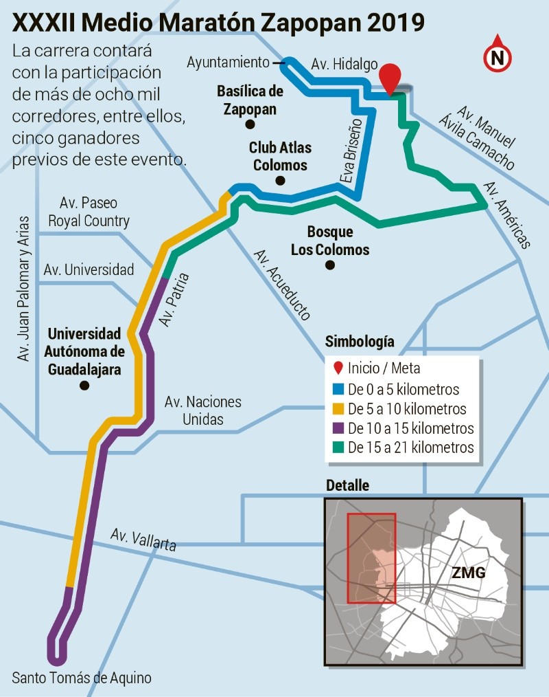 Todo está listo para que se lleve a cabo la edición número 32 del Medio Maratón de Zapopan. Mañana, en punto de las 7:00 horas, el disparo de salida resonará para comenzar una celebración más del mayor evento atlético de este municipio.En esta ocasión, la ruta de los 21 kilómetros será recorrida por más de ocho mil atletas, procedentes de todo México, además de contar con presencia de corredores internacionales procedentes de Kenia y Etiopia.Entre los corredores más destacados está el caso del keniano Julios Kypiego Ketter, quien ha ganado el 21K de Guadalajara en cinco ocasiones, mientras que en Zapopan se ha coronado en las ediciones de 2010, 2011 y 2016. Además, estarán presentes Geofrey Kenisi y Rodgers Ondati, quienes también han logrado el triunfo en este evento.En la rama femenil, destaca la presencia de las también kenianas Genoveva Jelagat y Risper Gesabwa, quienes son algunas de las atletas élite que recorrerán la ruta zapopana.La élite de México tendrá presencia en esta competencia con Juan Carlos Carera, quien se coronó en la edición de 2015. Asimismo, las mexiquenses Mayra Sánchez y Dulce María Rodríguez, también ganadoras de esta carrera, han confirmado su asistencia.La salida y meta de este medio maratón estará situada frente la Presidencia Municipal de Zapopan, mientras que la ruta, avalada por la IAAF, ha sido trazada a través de la Avenida Patria y calles aledañas al primer cuadro de la ex Villa Maicera.Para esta edición, la bolsa de premios a repartir será de 828 mil pesos entre todos los ganadores de cada categoría.Buscan la Etiqueta BronceEn esta ocasión, el ingrediente especial para la edición 32 del Medio Maratón de Zapopan será la búsqueda de la Etiqueta Bronce de la IAAF, certificado que únicamente se otorga a las competencias que cumplen con los más estrictos estándares de certificación.El Medio Maratón de Zapopan contará con la presencia de visores de la IAAF, quienes determinarán si se otorga esta condecoración a la ruta zapopana.En caso de obtener la Etiqueta Bronce, el 21K de Zapopan se sumará al Maratón de Guadalajara como las únicas competencias en Jalisco con esta distinción.