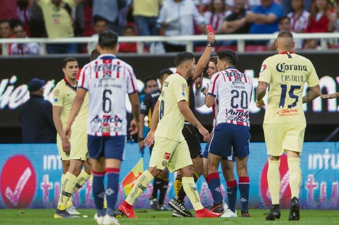 Al medio tiempo, mientras caminaba alrededor de la cancha del Akron para recibir el aplauso del público tras recibir un homenaje de la directiva de Chivas, Ramón Ramírez no sólo resumió el primer tiempo del Clásico de anoche, sino que presagió el segundo.“Esto es Chivas, y Chivas no le puede jugar con miedo al América”, dijo el símbolo del Rebaño a la pasada, cuando se le preguntó qué le pasaba al Guadalajara tras 45 minutos en el Akron y 90 en el Azteca.Y es que con distinto planteamiento y con hombres diferentes, Chivas fue, otra vez, muy poca pieza ante un América que no necesitó de hacer su mejor partido para volver a recetar otro doloroso 2-0 al Guadalajara en un lapso de cuatro días.Chivas se quedó con 15 puntos fuera de zona de Liguilla, mientras América llegó a 19 y se encaramó al cuarto lugar de la competencia.Ya sin la obligación de poner a jugadores con límite de edad, José Cardozo mandó a lo mejor que tenía disponible… y a Alejandro Zendejas, su novedad.Otra vez nadie avisó en el Rebaño que el partido había comenzado y apenas al minuto 3, por la zona izquierda de las Chivas, llegó Renato Ibarra como bólido para dejar a Zendejas y a un tibio Miguel Ponce para acarrear el balón hasta línea de fondo y meter servicio al anticipo de Nicolás Castillo sobre Jair Pereira, para el cabezazo del chileno y el 1-0 madrugador y lapidario.Al Rebaño le costó trabajo enderezar la nave, pero al minuto 36 la misión se volvió imposible cuando Jesús Molina se fue expulsado con roja directa por una fuerte entrada sobre Guido Rodríguez.Las desgracias rojiblancas continuaron en el segundo tiempo, cuando apenas a los cuatro minutos del complemento Andrés Ibargüen abusó de la débil marca de Josecarlos Van Rankin para sacar un tiro que se le coló a Gudiño para el 2-0.Con dos adentro, uno menos en la cancha, y 11 campeones enfrente, la ecuación no podía tener otro resultado y el Rebaño volvió a caer ante el América.Al minuto 36, Jesús Molina fue traicionado por sus revoluciones y entró fuerte de manera innecesaria a buscar un balón que ya había perdido ante Guido Rodriguez. El volante dejó la pierna sobre su oponente y el silbante, sin pensarlo, le sacó la tarjeta roja directa; esa fue demasiada ventaja para el América.Cualquier intento de reacción de Chivas, que fue afortunado de irse al descanso 1-0, lo liquidó América con otro gol tempranero. Ahora fue a los cuatro minutos de la reanudación cuando Andrés Ibargüen vacunó al Rebaño, que desde ahí supo que iba a ser muy difícil hacer dos goles en las circunstancias en las que jugaba.Chivas encontró la jugada grande en el área rival al 74’, cuando Van Rankin remató solo en el corazón del área un tiro de esquina donde Madrigal le jaló la marca. Josecarlos vació su remate pleno por un costado, y la oportunidad de ver un cierre de partido emocionante se desvaneció.“Por dignidad José Cardozo debe de irse, no tiene nada qué hacer en el Guadalajara, este es un equipo grande y no merece estar aquí. Sus planteamientos nadie los entiende. Le queda grande el equipo, pasamos vergüenza ante el América. Si no renuncia, que lo corran”Néstor Riva López, seguidor de Chivas.“Les ganamos caminando, no fue rival Chivas y apoyo a la afición de Chivas, pese a que soy del América, debe irse Cardozo, no es técnico para Chivas. Han sido los partidos más fáciles que hemos ganado en el torneo y nos sirven mucho para embalarnos al final del torneo y llegar bien a la Liguilla”Daniel Martínez, seguidor de América.Con la intención de generar convivencia, un rato de diversión y para que la afición se refrescara con una fría cerveza, Tecate montó ayer un mini estadio de futbol en el estacionamiento del Estadio Akron, el cual sirvió para que se disputara una cascarita entre las Leyendas del Guadalajara, equipo conformado por ex jugadores como Héctor Reynoso, Gustavo Nápoles, Héctor “Pirata” Castro, Sergio Rodríguez y Camilo Romero, quienes enfrentaron a un equipo de nombre Amigos Tecate.En la Activación Tecate, el triunfo fue para los ex profesionales por 8-5, sin embargo la diversión estuvo desde la cabina de transmisiones, y es que la narración de esta cascarita corrió por cuenta de Christian Martinoli y Luis García, figuras de la crónica deportiva en México.“Es disfrutar el ambiente extracancha con los aficionados, nos toca convivir con la gente, nos gusta, nos divertimos, es una activación por parte de la gente de Tecate que nos invitaron y es padre, se siente la buena vibra del Clásico”, platicó Héctor Reynoso, ex capitán de Chivas y uno de los últimos baluartes del Guadalajara en sus épocas.Bromas en todo lo alto, cervezas en mano, uno que otro balonazo, fue lo que se pudo apreciar en las tribunas montadas por la cervecera Tecate, que aprovechó para vender su producto ante el calor del ambiente y la emoción que traían los aficionados, quienes portaron playeras del Guadalajara y del América, ya que pocas horas después disputarían el Clásico Nacional.1. Raúl Gudiño, 2. Josecarlos Van Rankin, 4. Jair Pereira, 21. Hiram Mier, 16. Miguel Ponce, 11. Isaac Brizuela, 20. Jesús Molina, 6. Dieter Villalpando, 29. Alejandro Zendejas, 9. Alan Pulido, 7. Alexis Vega, DT. José Cardozo.Cambios1. Agustín Marchesín, 22. Paul Aguilar, 18. Bruno Valdez, 19. Víctor Aguilera, 3. Jorge Sánchez, 30. Renato Ibarra, 4. Edson Álvarez, 5. Guido Rodríguez, 8. Mateus Uribe, 11. Andrés Ibargüen, 15. Nicolás Castillo, DT. Miguel HerreraCambiosÁrbitro: Jorge Isaac RojasSede: Estadio Akron