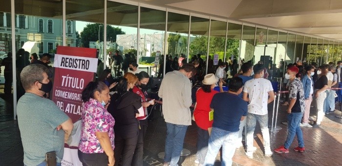 La euforia por el campeonato del Atlas sigue en toda la ciudad, ahora los aficionados se dieron cita en la explanada del edificio de Rectoría de la Universidad de Guadalajara para acudir por su título, promoción que lanzó en redes sociales, Ricardo Villanueva, rector de la casa de estudios. Al corte de las 16:00 horas llevaban registrados más seis mil títulos, superando por el doble la expectativa de tres mil por día.La expedición del reconocimiento comenzó hoy a las 10:00 horas, Jared Pérez, integrante del equipo de prestadores de servicio que lleva la logística explicó cómo se hace el trámite, “Primero debes pasar a registrar tus datos, estos pueden ser individuales, familiares u otro nombre, esa información es la que va salir en título. Luego se pasa a impresión, para posteriormente recogerlo en la otra parte de la explanada”.El prestador de servicio indica que son más de 10 compañeras las que toman los datos a las personas que se formaron desde temprana hora. “Hubo gente que llegó desde la siete de la mañana para obtener su título. Ahorita sólo se está registrando a las personas que tienen ficha, ya mañana volveremos a iniciar con el proceso, recomiendo que se vengan temprano”.Dania Verónica Jiménez González, egresada de la licenciatura en Psicología es una de las afortunadas que ya tiene en sus manos su título. “Es registro se hace de manera rápida, lo que tarda un poco más es la entrega de la impresión”. Explica que en su casa todos son aficionados de los Rojinegros y que acudió al llamado del rector por el cariño que le tiene al club y a la universidad, “Ver que el Atlas fue campeón es una emoción muy grande, desde pequeña vi a mis abuelos y tíos anhelando un título, hoy por fin se logró”.Esta mañana, el rector general, Ricardo Villanueva compartió en sus redes sociales una serie de fotografías donde se muestra firmando el documento que será entregado a los aficionados del Atlas. "Dejen ustedes la impresión, la firmada era la difícil!!! Por cierto, para la entrega nos ayudarán prestadores de servicio social y quiero agradecer también a Sistecopy que patrocinará la impresión de estos títulos y en papel reciclado".