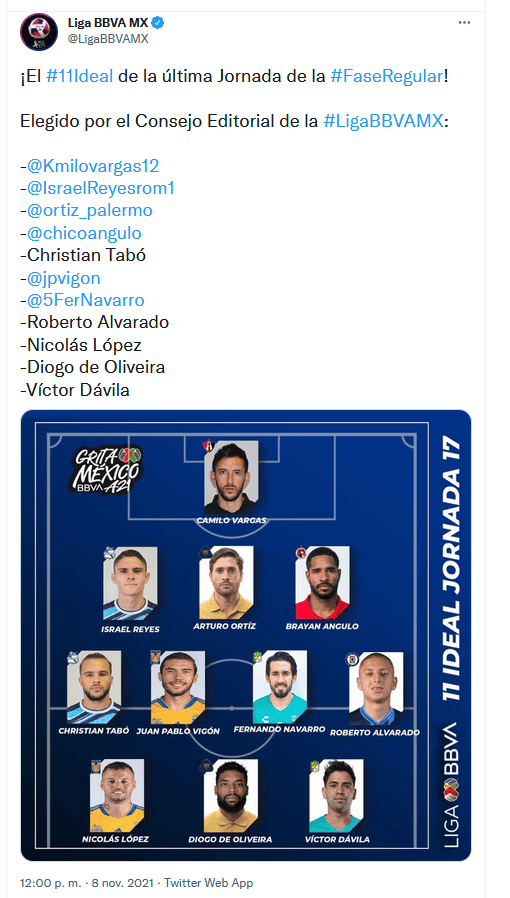 Una vez más Camilo Vargas se consolidó entre los mejores jugadores de la Liga MX, pues este día fue incluido en el 11 ideal de la Jornada 17 del Apertura 2021.Fue este lunes cuando la Liga MX anunció a los 11 futbolistas más destacados de la Jornada, y de nueva cuenta Camilo se coló en este selecto grupo después de su actuación en el triunfo de Atlas contra los Gallos Blanco del Querétaro.Después de vencer al cuadro queretano, el Atlas aseguró el segundo lugar de la clasificación, y es por eso que los Zorros ya se encuentran instalados en la ronda de los Cuartos de Final.Debido a esto el Atlas tendrá que esperar tres semanas para volver a la actividad, pues además de que se disputará una nueva fecha FIFA durante este mes, los rojinegros también tendrán que aguardar a que se dispute el Repechaje del torneo para saber quién será su rival en la Liguilla.OF