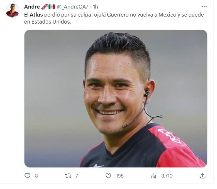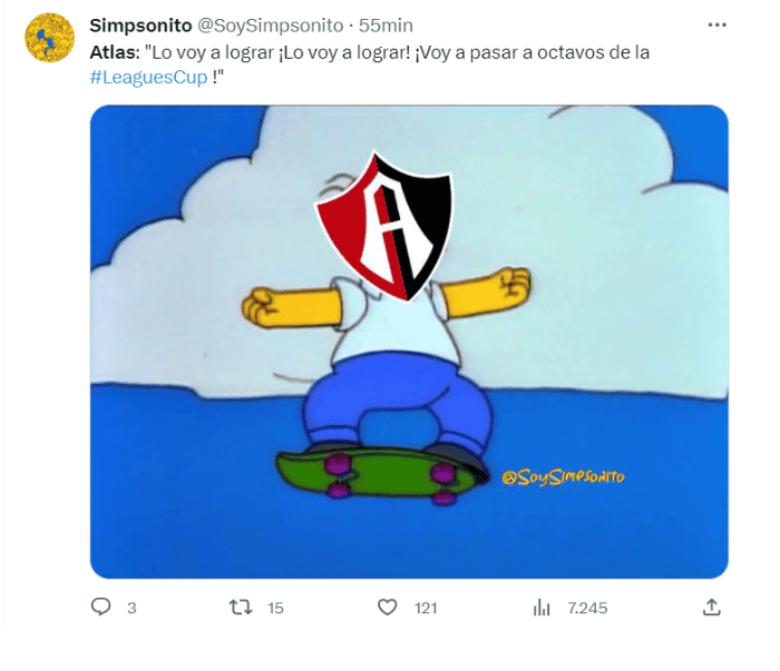 Los rojinegros del Atlas quedaron eliminados de la Leagues Cup luego de caer vía penales ante el New England Revolution de la MLS en un partido bastante emocionante.Los dirigidos por Benjamín Mora se pusieron adelante en el marcador desde los primeros minutos con goles de Jordy Caicedo y Mateo García, sin embargo, no supieron manejar la ventaja y el conjunto estadounidense se fue al ataque hasta empatar el partido.La polémica no se hizo esperar de parte del árbitro mexicano Fernando Guerrero, quien marcó un penal inexistente a favor del New England, el cual le sirvió para empatar el partido y enviar el duelo a los penales.Desde los once pasos, el villano de los rojinegros fue Javier Abella, quien voló su disparó y concretó el fracaso rojinegro. Ante esto, los cibernautas no perdieron el momento para burlarse del equipo tapatío, el cual hace unos días se mofó de la eliminación de las Chivas en la Leagues Cup.