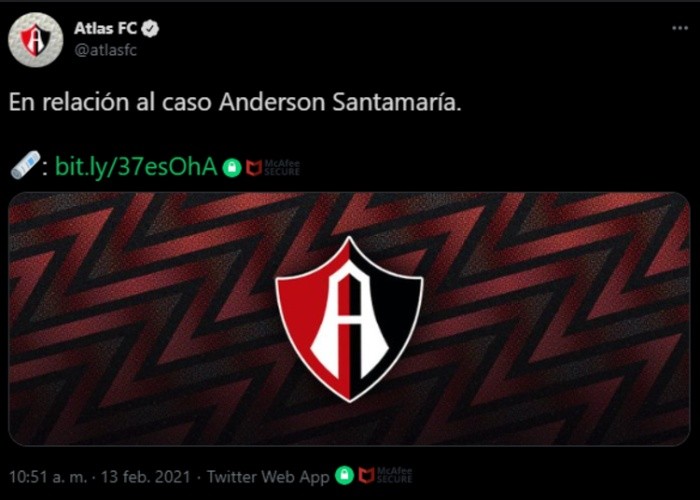 El jugador del Atlas Anderson Santamaría fue captado en un video mientras se encontraba en una fiesta en medio de las restricciones de la Liga MX por el COVID-19, por lo que el equipo anunció esta mañana la decisión de separarlo y cumplir con un periodo de aislamiento.''Al incumplir con los reglamentos y protocolos de sanidad, tanto de nuestra institución como de la Liga MX, la directiva de Atlas FC determinó que el jugador Anderson Santamaría, será separado del plantel Rojinegro hasta cumplir con un aislamiento protocolario y presentar prueba PCR con resultado negativo, esto en consecuencia de realizar una reunión posterior a nuestro partido ante el Club Santos Laguna por la Jornada 5 del Guard1anes 2021''.El defensa peruano también será acreedor a una multa económica conforme al reglamento del club, señala el comunicado.OF
