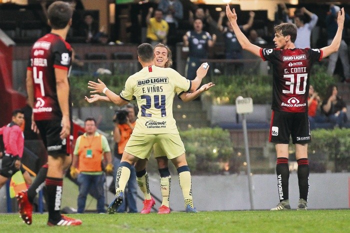 América puso el último clavo en el ataúd rojinegro al minuto 79 gracias a una gran jugada de la joya azulcrema, Sebastián Córdova, quien le ganó el esférico y dejó sentado a Ulises Cardona y sirvió a Federico Viñas, para que el uruguayo marcara su segundo tanto del encuentro.