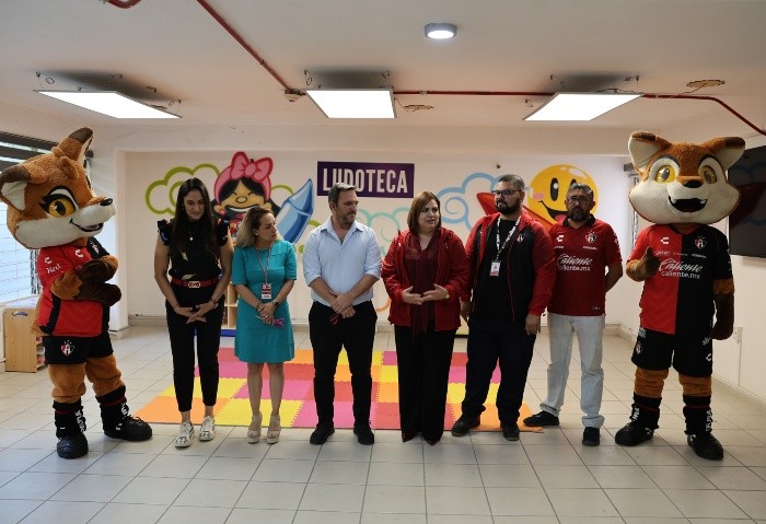 Este lunes 8 de abril, los rojinegros del Atlas visitaron las instalaciones de Hogar Cabañas para celebrar la inauguración de su cuarta Ludoteca, como parte del programa “Jugamos X Jalisco”. El evento reunió a directivos, voluntarios y a los jugadores de los Primeros Equipos Femenil y Varonil, además de niñas, niños y adolescentes en situación vulnerable que forman parte de esta institución de asistencia integral.Durante la ceremonia se develó una placa conmemorativa que simboliza el esfuerzo conjunto entre Orlegi Sports, Atlas FC, Ganar Sirviendo y Jugamos X Jalisco, sellando así el compromiso de brindar espacios que impulsen el bienestar, el juego y el desarrollo de la niñez jalisciense.Con esta nueva Ludoteca se impactará directamente a 286 menores, quienes ahora contarán con un entorno seguro, digno y enriquecedor, donde podrán jugar y fortalecer su desarrollo integral.El evento contó con la presencia de Germán Brunati, Presidente Deportivo de Atlas FC; Mariana Alvídrez García, Gerente General de Ganar Sirviendo; la abogada Giovana Navarro, encargada del Despacho de Dirección General de Hogar Cabañas; el Maestro Alejandro Contreras, Jefe de la Unidad de Gestión Integral de Hogar Cabañas; y Adriana Méndez, Directora de Desarrollo Institucional de Fondo Unido - United Way México.Al concluir la ceremonia, los futbolistas convivieron con los menores en actividades recreativas llenas de alegría y momentos emotivos, reafirmando así el compromiso de Atlas FC y Valor Rojinegro de Ganar Sirviendo y de seguir transformando vidas a través del deporte y la solidaridad.SV