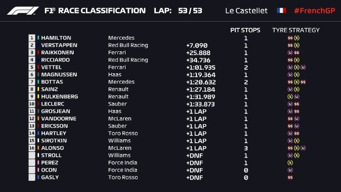 El británico Lewis Hamilton (Mercedes) declaró este domingo, tras ganar el Gran Premio de Francia y recuperar el liderato en el Mundial de Fórmula Uno, que esta situación no es determinante porque "aún queda un largo camino por recorrer"."Es una gran sensación obtener este resultado cuando eres constructivo, te criticas a ti mismo y afrontas un reto con nuevos métodos y una nueva determinación. Pero también es decepcionante para el equipo, ya que tuvimos la oportunidad de hacer un 1-2", dijo Hamilton, que aventaja por 14 unidades a Sebastian Vettel en la cima de la clasificación de pilotos (145 unidades por 131 del alemán)."Me sentí muy cómodo con el equilibrio del coche. Max (Verstappen) tenía un ritmo decente, pero yo podía mantener la diferencia en unos cinco segundos", explicó."El nuevo motor nos ha puesto en línea con todos los que pusieron una nueva unidad de potencia en Canadá y todo el equipo debería estar contento por el buen trabajo realizado. Pero queda un largo camino por recorrer y seguiremos afrontando al resto de la temporada como lo hemos hecho hoy", agregó. RR