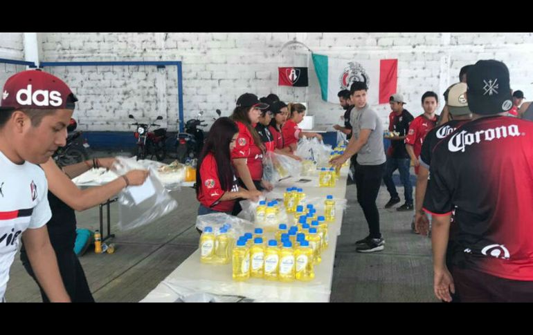 GUADALAJARA, JALISCO.- La Barra 51, el grupo de animación de los rojinegros del Atlas, viajó a Morelos para ayudar a empacar y distribuir los insumos recabados en el estadio Jalisco para ayudar a los afectados por el terremoto del martes.El club rojinegro anunció ayer por la noche a través de su cuenta de Twitter que los integrantes del grupo de animación saldrían hacia Cuautla para ofrecer su apoyo, y publicó hoy por el mismo medio fotografías que los muestran en acción.Atlas reunió más de 70 toneladas de víveres en el centro de acopio instalado en el estadio Jalisco. Además, algunos futbolistas rojinegros recibieron ayer insumos en un centro comercial de Zapopan, con ayuda de jugadores de Chivas.El club invitó a sus seguidores y a la población en general a seguir contribuyendo a los esfuerzos de reconstrucción con donaciones al Movimiento Azteca, iniciativa puesta en marcha por Televisión Azteca, empresa propietaria del club.