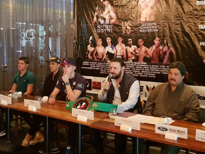 El Consejo Municipal del Deporte de Guadalajara (Comude) está listo para dar cerrojazo a las actividades boxísticas del 2018 cuando el próximo sábado se lleve a cabo la última función del año en las instalaciones del Gimnasio Multiusos del Parque San Rafael, misma que está conformada en su mayoría por peleadores jaliscienses. Serán un total de 13 combates los que conformen la cartelera de este sábado, en la que habrá debuts, confirmaciones y una corona nacional en juego, ya que una de las peleas estelares será la que protagonicen Jorge ''Dandy'' Pacheco y César Ayón, quienes pelearán a ocho rounds en la división de los Ligeros por el título de la Fecombox. Asimismo, en esta gala boxística se dará el debut profesional de Nitro Goyri, quien se fajará a cuatro asaltos en peso Welter contra Sergio ''Charro'' Becerra, en una de las peleas estelares de la noche. En esta función también destaca la contienda entre Benito ''Canelito'' García y Julio César Guzmán, quienes subirán al encordado para disputar un combate pactado a ocho episodios en la división Súper Gallo. Durante la presentación de estos combates, el tapatío César Ayón, quien busca convertirse en monarca nacional, aseguró estar preparado para quedarse con el fajín de campeón, no sin antes brindarle emociones al público de la Perla Tapatía. ''Vengo bien preparado y me siento confiado por lo que he hecho. Mucho se ha hablado abajo del ring, he oído que mi rival ha hablado mucho de mí, pero las habladas se quedan aquí. El sábado se sabrá quién es el mejor y el público lo verá''. Por su parte, el joven Nitro Goyri, quien es hijo del actor y cantante Sergio Goyri, aseguró que a partir de este sábado tratará de forjar su propia historia en el pugilismo con una demostración de lo que sabe hacer arriba del cuadrilátero. ''Pelearé con alguien que ya tiene mucha experiencia, mucho se ha dicho de mi apellido, de lo que he hecho en la música, pero al final el apellido no cuenta, mi papá no se sube a pelear por mí. El sábado verán lo mejor de un servidor, no me gusta hablar, me gusta demostrar lo que sé hacer. Que sepan que no estoy aquí sólo por mi apellido, sino por mi talento''. OF