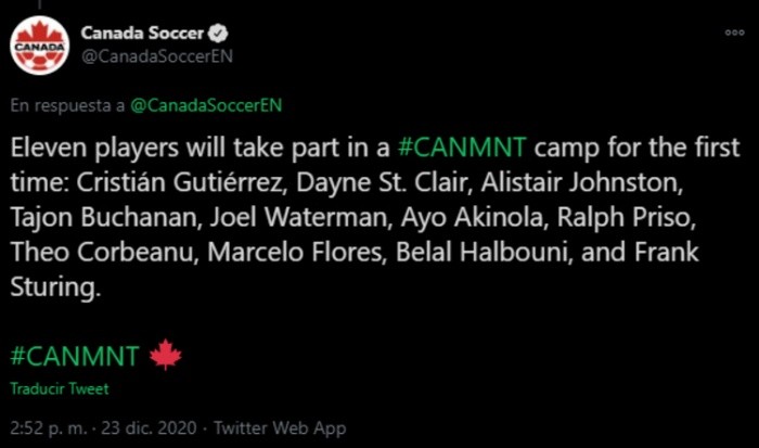 La Selección de Canadá convocó a Marcelo Flores, la joya del Arsenal, para un campamento en enero con jugadores juveniles y que pueden formar parte de su proceso rumbo a los Juegos Olímpicos de Tokio.Marcelo nació en Canadá, hace 17 años, con padre mexicano y madre inglesa, por lo que puede decidir entre estas tres nacionalidades. Flores ya ha vestido la camiseta del Tricolor en categorías inferiores, pero todavía puede representar a los otros países, porque no ha disputado un encuentro oficial."Como un paso hacia los Clasificatorios de la Copa Mundial de la FIFA, el campamento de enero brinda a nuestra Selección Nacional Masculina la oportunidad de volver a sumergir al grupo tanto táctica como culturalmente hacia los partidos competitivos en marzo", dijo John Herdman, entrenador de Canadá."Como esta es la primera vez que estaremos en la cancha con algunos jugadores en más de un año, será importante enfocarnos en las actuaciones mientras avanzamos hacia la Copa Mundial de la FIFA Qatar 2022".Flores ha destacado en los entrenamientos del Arsenal, a pesar de su corta edad, y apunta a debutar pronto con los Gunners.OF