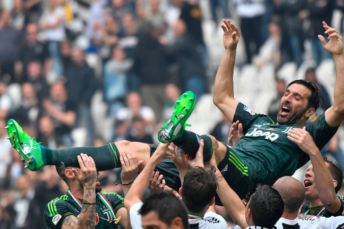 Fue un día de celebraciones, pero también de lágrimas para el campeón Juventus al decirle adiós a su capitán Gianluigi Buffon en su último partido como "bianconero" tras 17 años en el club.Juventus superó 2-1 al descendido Hellas Verona en la última fecha de la temporada el sábado, pero el resultado fue lo de menos. Todo se centró en una emotiva despedida a Buffon, además de levantar su séptimo trofeo seguido como campeones de la Serie A, algo sin precedentes en la historia de la máxima categoría del fútbol italiano.Considerado como uno de los mejores arqueros de todos los tiempos, Buffon confirmó el jueves su salida de la Juve. Pero el guardameta de 40 años aclaró que no contempla retirarse de inmediato y que sopesa ofertas para jugar en el extranjero.Buffon fue el primero en salir para el calentamiento, con el zaguero Andrea Barzagli reteniendo a sus compañeros por unos segundos para que el arquero disfrutara los vítores de la hinchada.El ex capitán de la selección italiana se pasó varios minutos bajo una de las gradas y lloró cuando abrazó a la mayor cantidad posible de aficionados.Una enorme pancarta de Buffon fue desplegada antes del silbatazo inicial. Los cánticos dedicados al jugador fueron incesantes durante todo el partido.Buffon, quien en más de una ocasión debió secarse las lágrimas, fue exigido muy poco.Nicolás, su contraparte brasileño del Verona, sí tuvo una tarde más complicada y le tapó un penal en el último tramo al lateral suizo Stephan Lichtsteiner, quien también disputó su último partido con el club.Paulo Dybala acarició darle la ventaja a la Vecchia Signora antes del descanso, pero el remate picado del delantero argentino pegó en el travesaño.La Juventus finalmente se adelantó a los 49 minutos. Tras un tiro de esquina que se jugó en corto, el brasileño Douglas Costa se internó del área y su remate fue repelido por Nicolás pero Daniele Rugani capitalizó el rebote.Miralem Pjanic aumentó la diferencia, tres minutos después, con una definición de tiro libre.Buffon fue reemplazado a los 63 minutos para recibir una ovación de pie.Alessio Cerci descontó para Verona a los 76, lo que impidió a la Juve fijar un récord de la Serie con 23 partidos sin encajar goles en una misma temporada.Buffon llegó a la Juventus en 2001 y disputó 656 partidos con el club.El portero ganó esta temporada su noveno scudetto con Juventus, vital en que los bianconeri conquistasen su cuarto doblete liga-copa seguido.Otros dos títulos de liga fueron despojados al club debido al escándalo de arreglo de partidos, el "calciopoli" Como castigo, Juventus fue relegado a la Serie B, pero Buffon se quedó para ganar el título de la segunda división y volver a primera.Entre los récords de Buffon se destaca la mayor cantidad de tiempo en la Serie A sin encajar un gol, con el imbatido durante 974 minutos consecutivos en la temporada 2015-16. RR