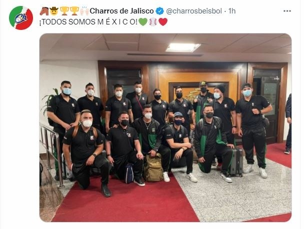 Los Charros de Jalisco aterrizaron en República Dominicana donde representarán a México en la Serie del Caribe, tras su título en la Liga Mexicana del Pacífico (LMP). A través de sus redes sociales, la novena jalisciense compartió su llegada a tierras dominicanas, acompañado de un "Todos somos México". Este viernes los Charros de Jalisco arrancarán su participación en la Serie del Caribe ante los anfitriones, República Dominicana a las 6:00 pm. Posteriormente, el sábado se medirán ante Venezuela a la 1:00 pm. Para el día domingo, el rival será Colombia a las 8:00 am, cerrando ante Puerto Rico el día lunes a la 1:00 pm y el martes a la misma hora ante Panamá. Los Charros de Jalisco buscarán hacerse con el título de la Serie del Caribe 2022, tras coronarse campeones de la Liga Mexicana del Pacífico al doblegar a los Tomateros de Culiacán. JL