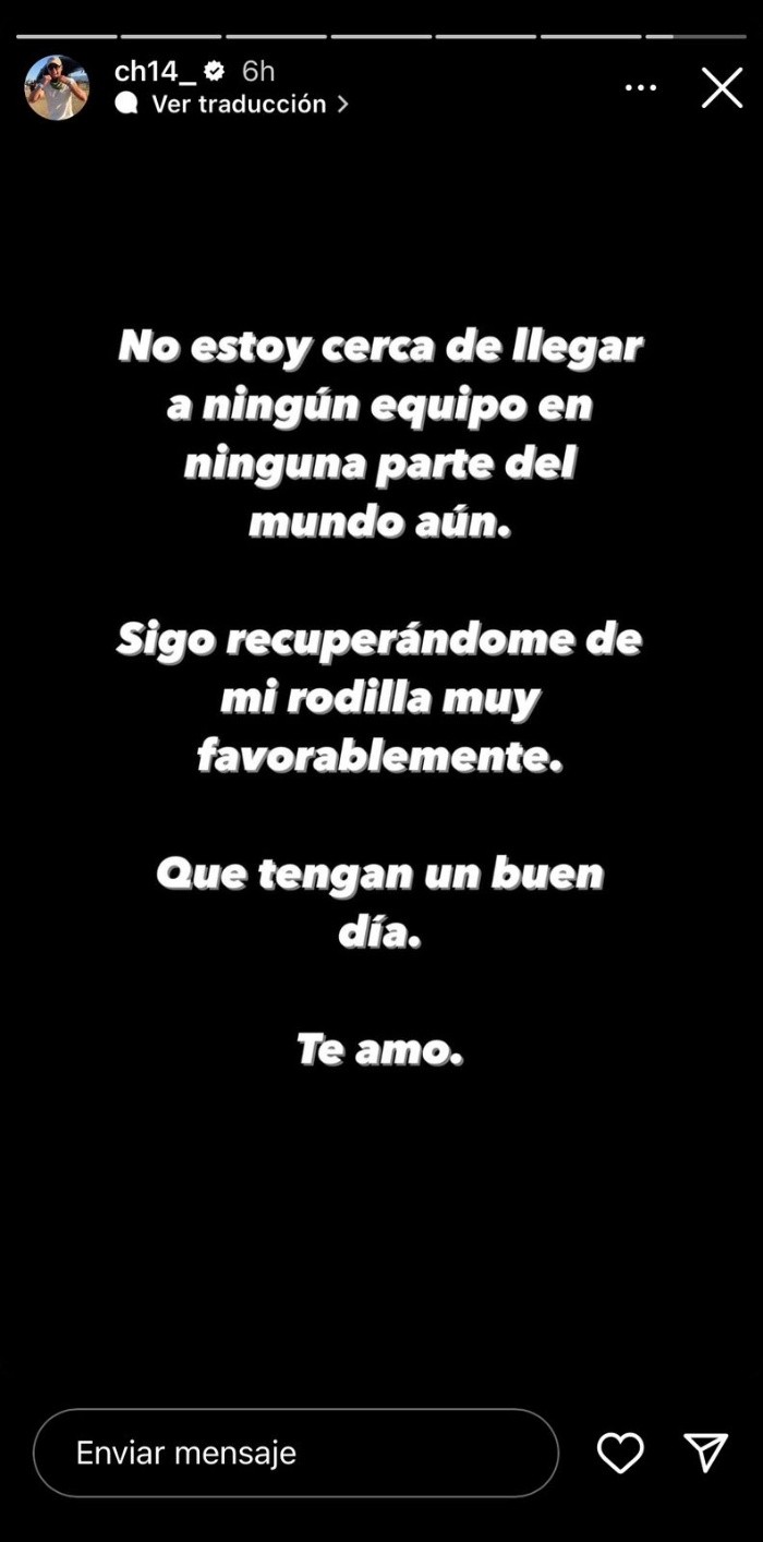 El futuro de Javier “Chicharito” Hernández es incierto, pues hace poco se hizo oficial su salida del L.A Galaxy de la MLS y a pesar de que los rumores sobre su nuevo destino están a la orden del día, aún no ha encontrado equipo para seguir con su carrera, además de que se encuentra en recuperación de una grave lesión en su rodilla.Como consecuencia, “Chicharito” ha tenido bastante tiempo para adentrarse al mundo del streaming en Twitch, un hobby que ha estado llevando a la práctica desde hace varios meses atrás, en dónde se relaciona con diversos creadores de contenido e incluso con otros futbolistas que también han incursionado en el mundo de las redes sociales.En esta ocasión se encontraba realizando un en vivo junto a Oribe Peralta y André-Pierre Gignac, quien sorprendió a Hernández con una declaración que lo dejó bastante comprometido."Ahora que vas a regresar a Chivas vas a jugar contra mí", declaró Gignac durante la plática con el ex futbolista del Real Madrid. Javier no tuvo muchas opciones ante el inesperado comentario del francés, por lo que solamente soltó muchas risas nerviosas y mencionó que “se acaba el stream, nos vemos mañana”.Ante esto, los aficionados de Chivas comenzaron con las especulaciones sobre el posible regreso del goleador histórico de la Selección Mexicana al equipo que lo vio nacer, señalando que Gignac filtró información que en un tiempo se convertiría en realidad.Para desmentir los rumores que lo colocaban en el “Rebaño Sagrado”, “Chicha” escribió mediante sus historias de Instagram que aún no tiene acuerdo con ningún equipo para seguir jugando, terminando con toda especulación generada a raíz de las declaraciones de Gignac, las cuales fueron viralizadas rápidamente a través de redes sociales.JV