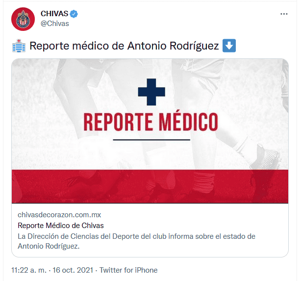 Chivas anunció este sábado que perderá a uno de sus porteros por operación.El arquero de Chivas, José Antonio Rodríguez, entró a quirófano este día y estará fuera de las canchas por aproximadamente seis semanas."Antonio fue sometido exitosamente a cirugía para la descompresión del nervio peroneo izquierdo; su pronóstico para la vuelta a la competición es de 4 a 6 semanas", explicó Chivas en un comunicado.La última vez que Toño Rodríguez tuvo actividad este torneo fue en agosto pasado, esto durante la Jornada 5 ante los Panzas Verdes de León.Este domingo Chivas se medirá a Toluca en la cancha del Estadio Akron, inmueble en donde se dará el silbatazo inicial en punto de las 17:00 horas.OF