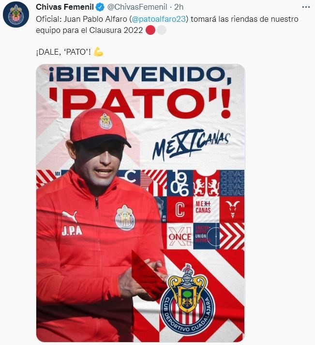 Aunque su nombramiento se dio hace un par de semanas, fue hasta ahora que Juan Pablo Alfaro fue presentado de manera oficial como el estratega de Chivas Femenil.Con la sala de prensa del Estadio Akron como escenario, el “Pato” se mostró entusiasmado con este reto, y dijo estar a la altura para tomar las riendas del chiverío, un equipo acostumbrado a pelear en los primeros planos de la Liga MX Femenil.“Estoy muy contento y muy agradecido con esta oportunidad que se me está brindando. Sé que es un reto muy interesante el que tengo enfrente, pero me siento con las tablas necesarias para poder sacar adelante a este barco que es Chivas Femenil. Lo que tengo a favor es que las conozco, sé lo que me puede dar cada jugadora”, comentó el timonel.Alfaro formó parte del cuerpo técnico de Edgar Mejía, quien a mediados de diciembre dejó el banquillo rojiblanco para atender temas personales. JL