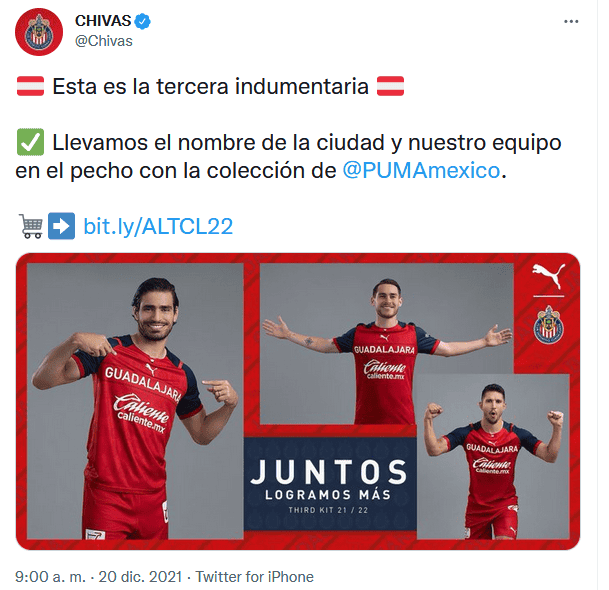 Las Chivas Rayadas de Guadalajara volvieron a generar polémica este lunes con la presentación de la que será su tercera indumentaria de cara al próximo torneo.Aunque ya se había filtrado anteriormente, fue hasta ahora que el Rebaño y la marca deportiva que lo viste revelaron la nueva camiseta del Guadalajara, misma que ha dividido opiniones entre la afición debido a que no incluye el escudo del equipo en el pecho, y este solo aparece como marca de agua.En esta nueva camiseta de Chivas predomina el color rojo, esto mientras que las mangas aparecen en color azul marino.Al frente de la playera sobresale el patrocinador principal del equipo y la leyenda "Guadalajara" en letras blancas, y aunque el nombre de la ciudad y del club destacan del resto de los detalles, un gran sector de la afición lamenta que el escudo no aparezca como de costumbre.El sustituir el escudo del equipo por el nombre del mismo es una idea que la marca deportiva que viste a Chivas ha replicado con sus equipos en diversas partes del mundo, e incluso en México los Rayados de Monterrey también presentaron un jersey sin su principal insignia.OF