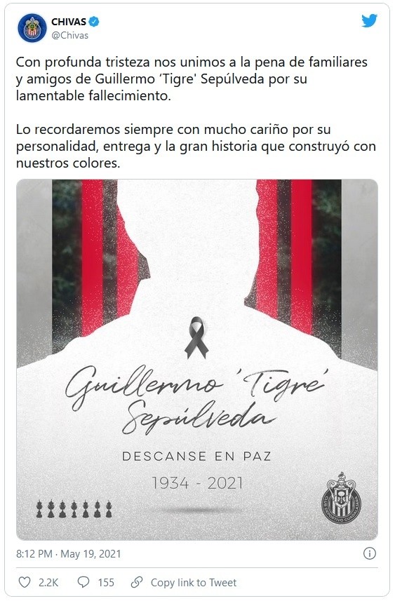 Falleció uno de los grandes jugadores que tuvo Chivas en su historia: Guillermo “Tigre” Sepúlveda, quien inició su carrera en 1951, ganó siete títulos y esto le valió para formar la gran camada del Campeonísimo. Fue en 1969 que dijo adiós al futbol profesional con el desaparecido Club Oro de Jalisco. El gran “Tigre” estuvo con la Selección Mexicana en dos mundiales: el de Suecia '58 y Chile.El “Tigre” se encargó de darle mucho auge al Clásico Nacional y aportó para que la rivalidad con el América se incrementara de manera importante, ya que tras liarse a golpes con el jugador del equipo rival Alfonso Portugal, fue expulsado y camino a los vestidores aventó la playera y les dijo “con esta tienen, hijos de la chin...”En una entrevista con EL INFORMADOR, el Campeonísimo nos dijo que le salió del corazón decirle eso a los americanistas, “en ese momento sentí que era buena idea y pues todos lo siguen recordando, señal de que fue importante. Lo volvería a hacer”.Esa frase, que se convirtió en célebre y aún es recordada por la afición, se dio el 25 de abril de 1965 tras ganar el Campeón de Campeones en el Estadio Olímpico.Recordó el “Tigre” que jamás volvió a cruzar palabra con Portugal, ya que "nos caíamos gordos, por lo menos a mí me caía muy mal. Él tenía el defecto de ser muy hocicón y creído, eso siempre lo voy a sacar a la luz. No nos podíamos ni ver y qué bueno, no me hubiera gustado ser amigo de una persona como él, éramos tan diferentes”.El Club Guadalajara de inmediato reaccionó al conocer la noticia por familiares de Sepúlveda, y expresó en sus cuentas de redes sociales: “Con profunda tristeza nos unimos a la pena de familiares y amigos de Guillermo ‘Tigre' Sepúlveda por su lamentable fallecimiento. Lo recordaremos siempre con mucho cariño por su personalidad, entrega y la gran historia que construyó con nuestros colores”, se lee en la publicación.JM