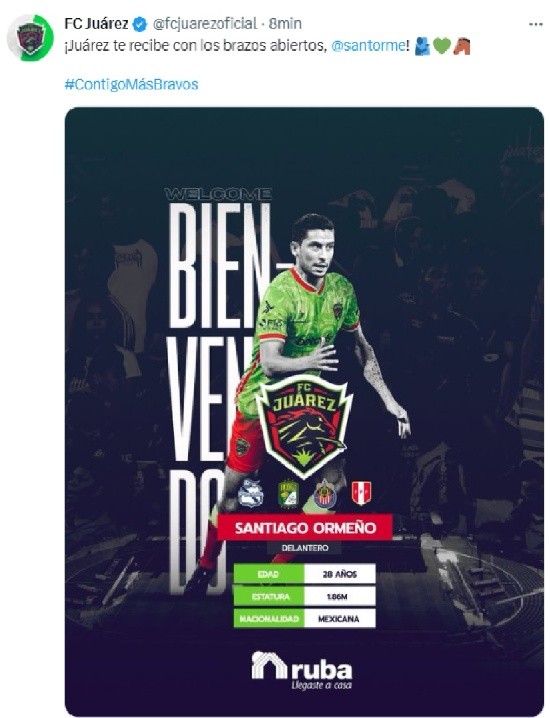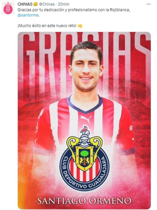 Chivas hizo oficial la salida del jugador Santiago Ormeño, luego de que no entrara en planes del profe Pauno, quien días antes le había dado total libertad irse a cualquier otro equipo. El club tapatío agradeció vía redes sociales a Ormeño: Gracias por tu dedicación y profesionalismo con la Rojiblanca, Mucho éxito en este nuevo reto.Se terminó la novela entre Chivas y Santiago Ormeño, pues este día el delantero fue anunciado con su nuevo equipo.Se trata del Bravos de Juárez, club que esta noche presentó al atacante mexico-peruano como su fichaje para el vigente Clausura 2023 de la Liga MX.Fue a través de sus redes sociales que el conjunto fronterizo publicó un video en donde Santiago fue "abducido" por los aliens para llevarlo de Guadalajara a Ciudad Juárez. De esta forma es que el atacante culminó su breve etapa con el Rebaño, misma que apenas comprendió 13 partidos entre Temporada Regular y la Fase Final del Apertura 2022.Durante ese lapso Ormeño sólo marcó un gol en partido oficial con las Chivas, y ahora saldrá del club debido a que no entró en planes del profe Pauno y su cuerpo técnico.IO