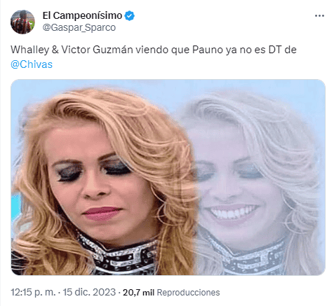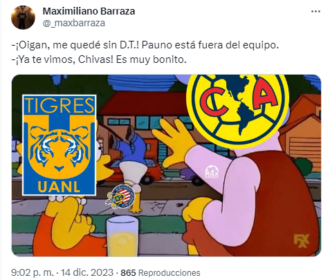 Ayer se hizo oficial la salida del técnico serbio Veljko Paunovic de Chivas, una situación que derivó en la llegada de memes a las redes sociales.Después de que se desataran los rumores de una posible renuncia del entrenador europeo, luego de que los resultados no culminaran de la mejor manera para el Guadalajara, la directiva de Chivas informó que finalizaba la relación de común acuerdo. Lo cierto es que se desconoce la verdadera razón de la separación.El Profe Pauno estuvo al frente de Chivas por un año; en su primer torneo consiguió los mejores números que llevaron al equipo a disputar la final del Torneo Clausura 2023, misma que perdieron ante Tigres, apenas el pasado mes de mayo.En el actual Apertura 2023, los números volvieron a estar de la mano de Chivas, que llegaron hasta los Cuartos de Final, en los que fueron eliminados por Pumas.La despedida de Paunovic derivó en la aparición de memes. Mientras algunos celebraron la decisión, pues consideran que era insostenible que el equipo quedara tan cerca del título y lo perdiera, además de que circulan numerosos asuntos en torno a indisciplinas al interior del equipo; pero otros se han expresado con tristeza, debido a que desde que Matías Almeyda se fuera, el equipo no había estado tan cerca de volver a ser campeón como sí ocurrió con el serbio.Se dice que el argentino Fernando Gago podría tomar el lugar de Veljko Paunovic para el torneo que está por comenzar, el Clausura 2024. *Mantente al día con las noticias, únete a nuestro canal de WhatsAppOF