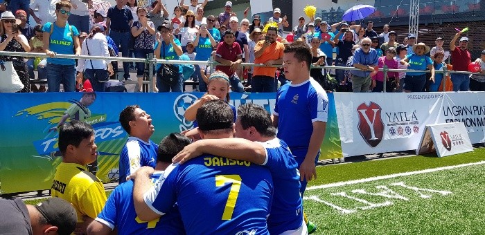 En un juego tenso, complicado y peleado de inicio a fin, Jalisco se proclamó como tetracampeón nacional del T21 Futbol Down Guadalajara 2019.Frente a poco más de 400 aficionados y con un doblete de Santiago “Chicharito” Encarnación, Jalisco se impuso a Nayarit en la gran final, esto con marcador final de 2-1.El cancerbero de Nayarit, que salió ataviado con los colores de los Rojinegros del Atlas, estuvo en plan grande bajo los tres palos, ya que en tres ocasiones ahogó el grito de gol por parte de los locales.Sin embargo, la suerte de los nayaritas se terminó cuando “Chicharito” tomó la pelota en el área y definió con sangre fría para ponerse en ventaja.Jalisco se fue al descanso con el marcador a su favor, pero justo al arranque de la parte complementaria, la zaga tapatía cometió una mano dentro del área y el silbante no dudó en señalar la pena máxima.Para fortuna del cuadro local, Luis Ángel “Cristiano” Sánchez cobró de manera defectuosa y permitió que el portero de Jalisco se vistiera de héroe al atajar el disparo.Sabedor de que había fallado a la hora buena, “Cristiano” buscó la revancha personal y esto derivó en un golazo de Nayarit, pues dando muestra de su calidad, Luis Ángel se enfiló a portería dejando en el camino a un sinfín de rivales. Ya dentro del área, el delantero definió con la parte externa para traer el empate.El gol en contra cayó como un balde de agua helada para Jalisco, sin embargo lograron retomar la confianza y “Chicharito” marcó el segundo tanto sobre la hora para llevarse un título que los confirma, de nueva cuenta, como el equipo más dominante de este certamen que se festeja desde 2016. RR