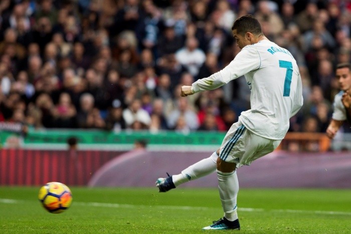Cristiano Ronaldo celebró su recién ganado quinto Balón de Oro con un doblete y goleada del Real Madrid 5-0 sobre el Sevilla, que permiten al conjunto blanco mantener tensa la lucha por la Liga española.El Barcelona, que visita el domingo al Villarreal, sigue liderando el campeonato con 36 puntos por la fecha 15, mientras que el Madrid subió momentáneamente al tercer lugar con 31, distanciándose en tres unidades del quinto clasificado, Sevilla.Los madridistas suman ahora el mismo total que el Valencia, segundo lugar general, y afrontan con los deberes hechos la disputa del Mundial de Clubes, donde se estrenarán el próximo miércoles, quedando aplazado su próximo compromiso liguero frente al vecino Leganés.En un acto sencillo y breve, Cristiano presentó sus cinco balones de oro ante su afición, que tardó solo tres minutos en gritar el gol inaugural de Nacho Fernández y celebró a los 23 el tercero del campeonato del astro portugués.El cuarto personal lo anotó Cristiano de penal a los 31', y el protagonista de la noche aún tuvo tiempo para participar de los dos siguientes goles de Toni Kroos (38') y Achraf Hakimi (42') antes de retirarse a los 76' entre aplausos de la hinchada.El Sevilla sigue siendo la víctima favorita del goleador madridista, quien contabiliza 27 dianas en 18 cruces con el cuadro andaluz, incapaz de beneficiarse en esta ocasión de las numerosas bajas en defensa de los locales.El Valencia podría acercarse a dos puntos del Barsa en caso de vencer al Celta de Vigo al cierre de la jornada, que arrancó con un empate sin goles entre Getafe y Eibar. El conjunto getafense mejoró momentáneamente a la séptima posición. Los armeros, entretanto, subieron al décimo segundo puesto.La programación sabatina se completa a continuación con el cotejo Deportivo La Coruña-Leganés.El partido del Sevilla fue desastroso en el estadio Santiago Bernabéu. Lucas Vázquez se atrevió de inmediato con un disparo salvada por Sergio Rico, y el Madrid navegó con viento a favor desde que Nacho abrió el marcador, al embocar un tiro de esquina tras falta de entendimiento entre Simon Kjaer y el colombiano Luis Muriel, quien dejó el balón franco para el insospechado goleador.Cristiano se animó a continuación con un zapatazo junto al poste y Marco Asensio empezó también a acomodarse en el rol de asistente, con un centro para Karim Benzema que el francés cabeceó desviado.El siguiente pase del canterano fue mortal de necesidad y agua bendita para Cristiano, quien ganó la espalda a la defensa y colocó la pelota entre Rico y el poste más cercano.Nunca despertó el Sevilla, tocado y hundido con la señalización de penal por mano de Jesús Navas, que convirtió Cristiano mediante disparo raso, seco y escurridizo bajo el cuerpo del arquero.Los dirigidos por el argentino Ernesto Marcucci salvaron un intento de chilena del hambriento portugués, pero no ya una eléctrica transición de Kroos, quien se apoyó en Vázquez ante de definir a un toque con la zurda, fuera del alcance de Rico.La jugada originó en un robo de Cristiano, quien también habilitó el último pase de Benzema para Achraf, sereno en cruce a la red en incorporación desde el lateral derecho.La segunda parte fue un trámite para el Madrid, ya con la cabeza en el Mundial de Clubes, y un suplicio para el Sevilla en un feudo que le sigue resultando maldito.Benzema casi amplió la cuenta con un testarazo al poste, mientras los andaluces siguieron echando de menos el concurso del mediocampista Steven N'Zonzi, apartado del plantel, y del entrenador argentino Eduardo Berizzo, quien está recuperándose de una operación tras serle diagnosticado un cáncer. RR