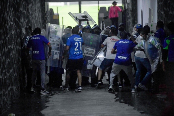 Tras la derrota del Cruz Azul, a las afueras del Estadio Azteca aficionados de la Máquina protagonizaron una pelea con elementos policiacos