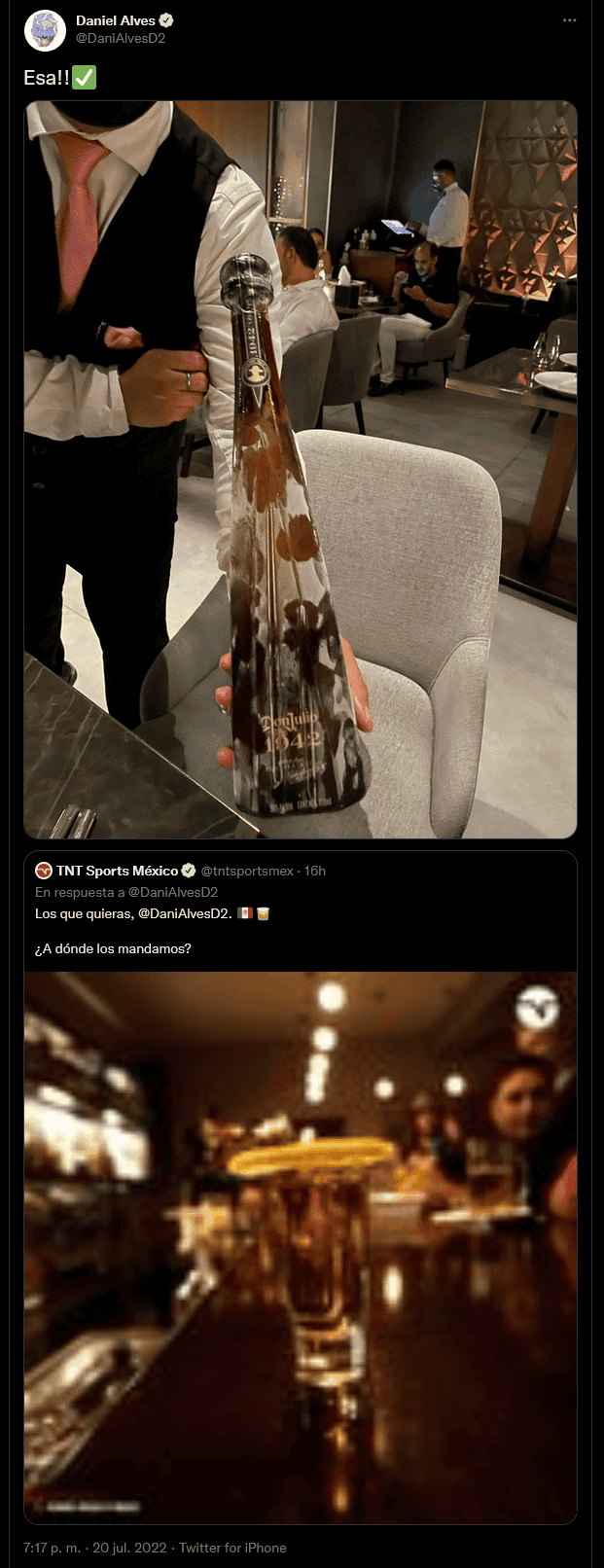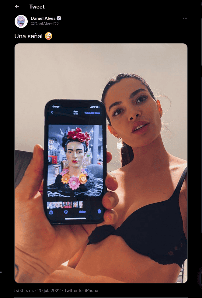 El histórico defensa brasileño, Dani Alves volvió a encender las redes sociales dando posibles pistas que podrían confirmar que jugará en la Liga MX, con el equipo de Pumas.El zaguero ha lanzado algunas publicaciones en Twitter relacionadas con México y sus tradiciones; sin embargo, todos lo manejan como "una señal", la cual que ha desatado un debate sobre su fichaje.La novela Pumas-Dani Alves había caído en un bache, pero volvió a encenderse con algunas publicaciones de la leyenda sudamericana.El sudamericano publicó una foto en su cuenta de Twitter en la que se aprecia a su pareja, aunque no es ella lo que destaca; delante de la mujer está extendido el brazo del propio Dani Alves, quien sostiene un teléfono celular en cuya pantalla está nada menos que una imagen de la pintora mexicana Frida Kahlo.Muchos aficionados han pedido respuestas al texto, que dice, "Una señal".Posteriormente, Alves escribió el mensaje: "Se me regalas una buena tequila te digo!!".Y más tarde, respondió a una publicación con una botella de tequila.El rumor sobre la llegada de Dani Alves al futbol mexicano ha estado latente las últimas semanas, pero nada ha ido más allá de las pistas.Dani Alves es el jugador con más títulos en la historia del futbol, con 43. De estos, 23 los logró con el Barcelona, y con esa mentalidad de campeón podría aterrizar en los Pumas, además de que busca ganarse un lugar con su Selección para disputar el Mundial de Qatar de 2022.OF