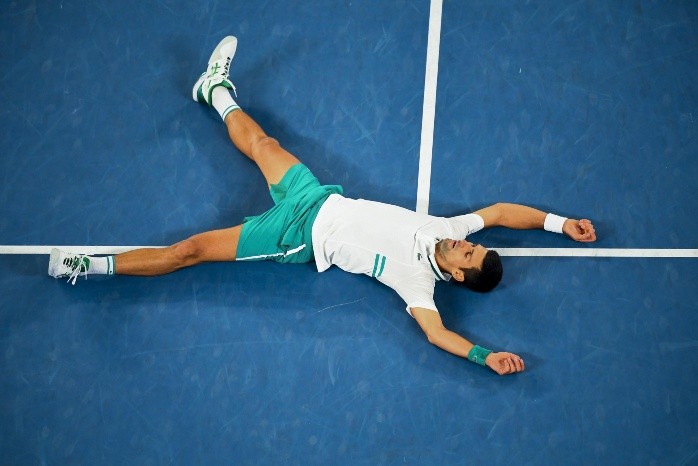 Quizá algunos pensaron que Novak Djokovic tendría que lidiar con ciertos problemas en esta edición del Abierto de Australia.Después de todo, sufrió una torcedura de abdomen durante una jugada en la tercera ronda del torneo y señaló que presentaba un desgarro muscular. El serbio llegó al partido del domingo habiendo cedido de antemano cinco sets en el torneo, la mayor cantidad que ha perdido rumbo a una final de un torneo major. Y enfrentaba a Daniil Medvedev, que mantenía una racha de 20 victorias consecutivas.Djokovic empleó un soberbio servicio, su habitual persistencia en el peloteo y su excelente desempeño en la línea de fondo para ganar 11 de 13 games en un tramo y derrotar el domingo 7-5, 6-2, 6-2 a un frustrado Daniil Medvedev, llevándose su tercer trofeo seguido del Abierto de Australia.Con este triunfo, Djokovic en Melbourne Park, sigue acercándose a Roger Federer y Rafael Nadal en la tabla de posiciones en cuanto a Grand Slam ganados, ahora con un total de 18, dos menos del récord masculino que comparten estos dos rivales.Cuando el encuentro terminó menos de dos horas después, Djokovic cayó de espaldas sobre la cancha. Luego de despedirse de Medvedev, Djokovic se dirigió a una de las laterales, se quitó la camiseta blanca y se despegó del abdomen piezas de cinta adhesiva deportiva color beige.El serbio de 33 años ofreció un "especial agradecimiento" a su entrenador personal, el fisioterapeuta argentino Ulises Badio, por ayudarle a salir adelante y mejorar a 18-0 su foja en semifinales y finales en las canchas duras de Melbourne."Probablemente, no sea tu último", dijo Medvedev. "No tengo más que decir".En un plano más general, Djokovic ha ganado seis de los últimos 10 majors y tiene asegurada la permanencia en el puesto de honor de el ranking mundial al menos hasta el 8 de marzo. Eso le dará 311 semanas en la cima, batiendo otro un récord de Federer.Medvedev, número cuatro del mundo, disputaba su segunda final de un Grand Slam —cayó ante Nadal en la final del U.S. Open de 2019.Djokovic puso fin a la racha de 20 victorias del ruso de 25 años. Medvedev también había ganado sus últimos 12 juegos contra rivales del Top 10 de la clasificación."Definitivamente es uno de los rivales más duros que he enfrentado en mi vida", afirmó Djokovic. "Es cuestión de tiempo antes que llegue a obtener un trofeo de Grand Slam, eso es seguro".Y luego bromeó con Medvedev, un ruso de 25 años que no había sufrido una derrota desde octubre pasado: "Si no te importa esperar un par de años más..."Medvedev había ganado sus últimos 12 duelos frente a rivales entre los 10 mejores del mundo, pero medirse con Djokovic en Australia es un desafío muy distinto.En el segundo set, cuando se le escapaba el encuentro, Medvedev chocó la raqueta blanca contra la cancha azul, y después la destruyó con un golpe. Para el tercero, miraba a su entrenador alzando las manos, como preguntando "¿Qué se supone que puedo hacer aquí?".GC