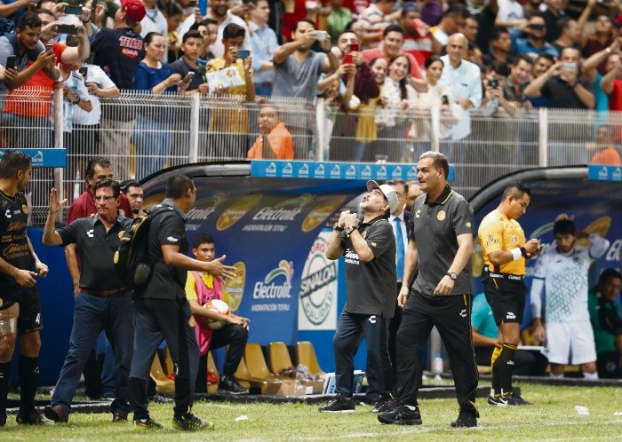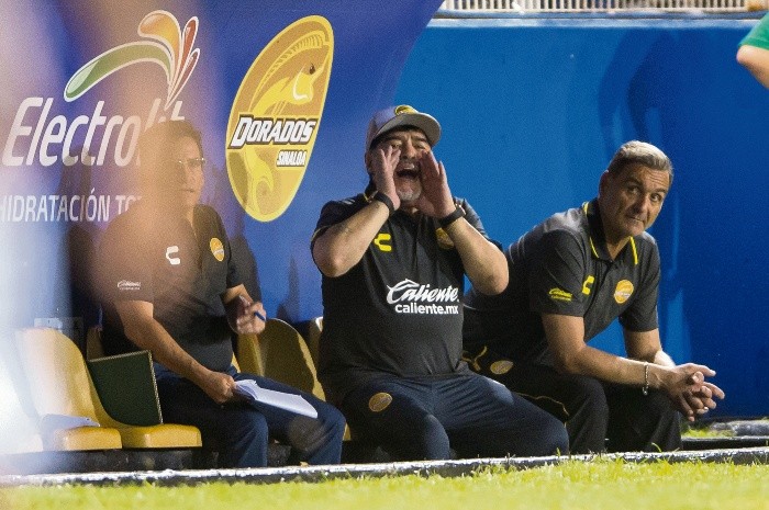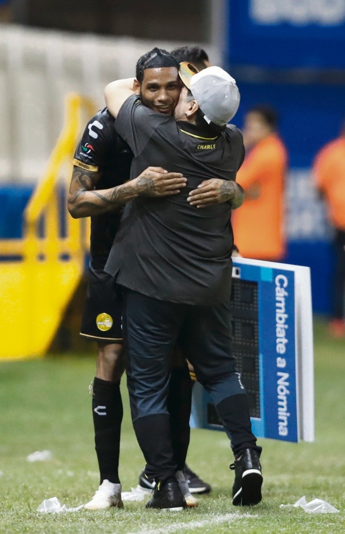 Culiacán se rindió al embrujo de Maradona, Cafetaleros también, y el espectáculo fue redondo.Ciertamente no alcanzó para llenar un estadio de 20 mil aficionados al que apenas fueron 12 mil, en una ciudad de un millón de habitantes que idolatra a los Tomateros del beisbol, pero su presencia también fue suficiente para que Dorados brincara del fondo de la tabla al décimo puesto y a un triunfo de los puestos de Liguilla.En el recuento final, Maradona cumplió con sus primeros 90 minutos.El espectáculo estaba montado. Una inusitada cobertura de prensa en el Estadio Banorte, y otra de ESPN que mandó a algunos de sus estelares a la transmisión de un juego que antes del de anoche, transmitía desde el estudio.La televisora montó la “Maradona Cam”, que siguió todos los movimientos de Diego Armando y nunca más desapareció de la pantalla. En sus reacciones importantes el argentino ocupó toda la pantalla, y durante las acciones del cotejo el “Pelusa” aparecía en un recuadro en la esquina inferior izquierda.Así, todo México pudo ver cuando Diego saludó a Jared Borgetti en la cancha, enviado de la cadena de televisión al partido. También cuando olvidó quitarse la gorra cuando se entonó el himno nacional en el estadio. En general en el primer tiempo “El 10” se mantuvo tranquilo, y estalló hasta la segunda mitad.Su equipo también estalló por vez primera en el torneo. Al 59’ gritó efusivo el primer gol de su escuadra y se fundió en un abrazo con su auxiliar Luis Islas, pero dos minutos después, con el 2-0, se abrazó con varios de sus jugadores.Nadie se resistió al embrujo de un Diego feliz por la victoria. Ni Sebastián Ibars, el argentino de Cafetaleros que se fue expulsado y que pasó por su abrazo con el “Pelusa”, ni parte del cuerpo técnico visitante que incluso le pidió al capitán de Dorados, el arquero Gaspar Servio, que sirviera de fotógrafo.También hubo festejo con la afición, y aunque era el más descordinado en el aleteo del pez, o no se supo los nombres de sus adversarios en la rueda de prensa, el show fue completo.Culiacán y el Ascenso se habían rendido, al menos por una noche, al embrujo de Maradona.Dorados goleó a Cafetaleros de Tapachula de la mano de otro 10. Vinicio Angulo marcó tres de los cuatro tantos con los que el equipo sinaloense se impuso al cuadro chiapaneco; 4-1 en Culiacán.Tras un olvidable primer tiempo en el que se fueron sin goles, Angulo comenzó a marcar diferencia al 59’ cuando madrugó a la defensa chiapaneca para abrir el marcador. Dos minutos después, el ecuatoriano capitalizó un error en la salida de la zaga de Tapachula para ampliar el marcador.Cafetaleros se acercó con tanto de Sebastián Ibars al minuto 64, para angustiar a los sinaloenses, sin embargo, Angulo marcó su tercero de la noche vía penal.La cereza en el pastel llegó por cortesía de los pies de Jesús Escoboza al minuto 85, con un disparo desde fuera del área que el arquero visitante no pudo atacar bien el tiro del jugador de Dorados.Diego de la Torre (en foto, segundo de izquierda a derecha) solía mentalizarse de cara a cada encuentro a saltar a la cancha. Ahora, lo hace pensando en ocupar un sitio en el banquillo que antes era impensado.El mediocampista de los Cafetaleros de Tapachula ocupa el rol de director técnico del equipo chiapaneco y en su tercer encuentro como estratega en el Ascenso MX, el ex jugador de Toluca, Querétaro y Jaguares en Liga MX fue el primero en ser contraparte de Diego Armando Maradona en esa División.De la Torre no tiene contrato como técnico en Cafetaleros, sino que para la directiva chiapaneca sigue siendo un jugador más de la plantilla.Desde 2003, cuando Antonio Mohamed fue jugador y técnico del Zacatepec al mismo tiempo no ocurría un caso similar al de De la Torre, quien vio limitada su acción sobre la cancha tras sufrir una lesión a mediados de julio pasado.“Ya me gustó esto de ser entrenador. Lo tenía planeado, pero no sabía que me iba a llegar tan rápido. Un domingo era jugador y el lunes en la mañana, el entrenador”, declaro De la Torre para el portal de ESPN.