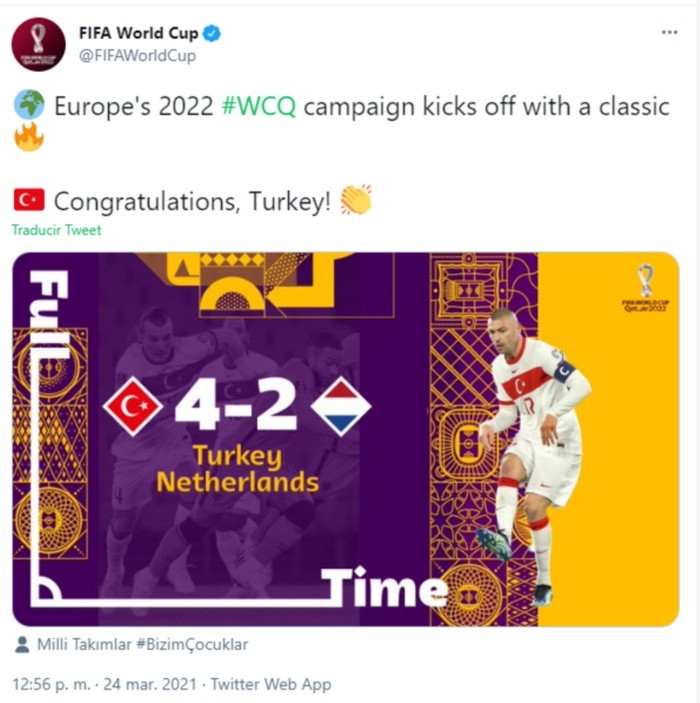 Primer partido de la fase de clasificación europea al Mundial de Qatar 2022 y primera sorpresa: Holanda arrancó muy mal y fue derrotada por 4-2 en su visita a Turquía, donde brilló especialmente Burak Yilmaz con un triplete, este miércoles en Estambul, en la primera jornada del grupo G.Yilmaz, atacante del Lille francés, firmó dos dianas en la primera parte (minuto 15 y 34 de penal). En la segunda mitad amplió la cuenta del equipo otomano Hakan Calhanoglu (46) y Holanda conservó esperanzas de remontada por unos instantes, cuando se acercó con los goles casi seguidos de Davy Klaassen (75) y Luuk De Jong (77), pero Yilmaz sentenció el choque con un soberbio tanto en el 81.El holandés Memphis Depay falló incluso un penal en el descuento final (90+5).Este resultado en el estadio Atatürk supone un revés contundente para la selección teóricamente favorita para finalizar líder y abre todavía más las opciones en la llave, que completan la Noruega de Erling Haaland, Montenegro, Letonia y Gibraltar.No es la primera vez que Holanda sufre un resbalón importante en Turquía en una época reciente. En septiembre de 2015 perdió 3-0 en Konya ante esa selección, sufriendo una derrota que terminó siendo determinante para que los neerlandeses no consiguieran clasificarse a la fase final de la Eurocopa 2016.Holanda tampoco logró clasificarse al Mundial de Rusia 2018 y su última presencia en un gran torneo internacional es el Mundial de Brasil 2014, donde finalizó en tercer lugar, cuatro años después de haber sido subcampeona del mundo en Sudáfrica 2010.Tras clasificarse para la Eurocopa 2020, que se retrasó a junio y julio de este 2021 por la pandemia, conseguir el billete para Qatar 2022 es una prioridad para una de las potencias tradicionales del futbol europeo después de su relevo generacional, pero la derrota del miércoles plantea muchas dudas.Holanda juega dos partidos más en esta fecha FIFA de marzo y en principio son propicios para empezar a corregir el rumbo, el sábado en Ámsterdam contra Letonia y el martes de la próxima semana visitando a Gibraltar.Por su parte, Turquía también jugará como local contra Letonia, el martes de la próxima semana, pero antes tiene que visitar a Noruega, que por la pandemia deslocalizó ese partido al estadio de La Rosaleda de Málaga (España).OF